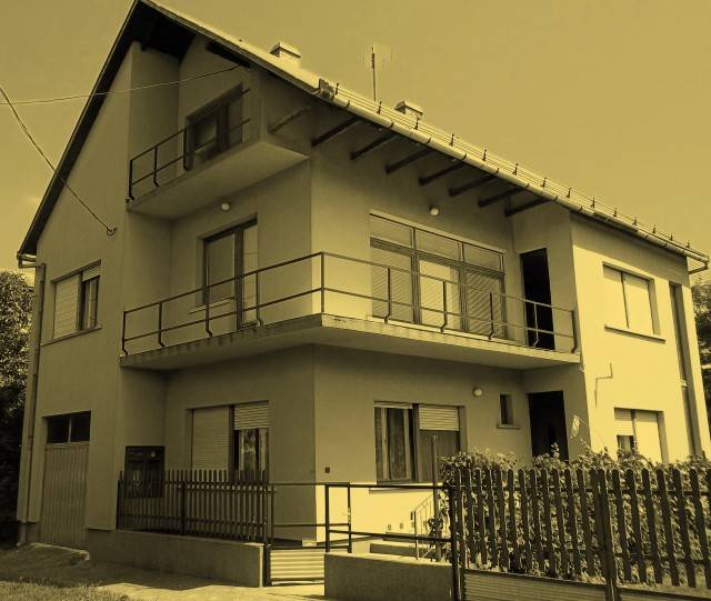 Kiváló statikai állapotban lév?, minimális esztétikai felújítást igényl?, kétszintes családi házat kínálunk eladásra Dunaföldváron. A hangulatos Duna-parti kisváros központjától karnyújtásnyira, csendes, biztonságos utcában álló ingatlan 1984-ben téglából épült, majd a közelmúltban részleges felújításon esett át. Az épület alsó, 100 nm alapterület? szintjén a rendkívül tágas és világos nappalihoz hálószoba, konyha, kamra, wc és kazánház kapcsolódik. A szintén 100 nm-es emeleten további három nagyméret? hálószoba, fürd?szoba, wc, el?szoba és közleked? került kialakításra. Az utcafronti hálószobák ajtaja mindkét szinten erkélyre nyílik. A h?szigetelt családi ház f?tésér?l gáz- és vegyes tüzelés? kazánok gondoskodnak. A gépkocsi tárolására zárt, f?thet? garázs szolgál. Az 1.480 nm-es udvar és kert öntözéséhez szükséges vízmennyiséget ásott kút biztosítja. A f?épület mellett elhelyezked? 50 nm-es, blokktéglából épült gazdasági épület gazdálkodásra is lehet?séget kínál.