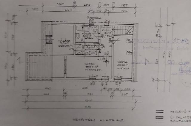 A földszinten a nagyméret?, kert-kapcsolatos nappali, dolgozószoba, 1 félszoba, konyha, étkez?, zuhanyzó + WC, kamra helyiség található. Az emeleten 1+2 félszoba, sarokkádas nagyméret? fürd?szoba + WC, el?tér (lépcs?ház) került kialakításra.