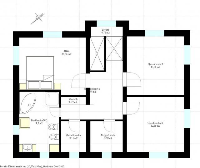 EMELET:3 szoba(lamináltpadló); gardrób szoba, dolgozó szoba, előszoba, nagy fürdőszoba sarokkád/zuhany/wc/bidé/mosdó