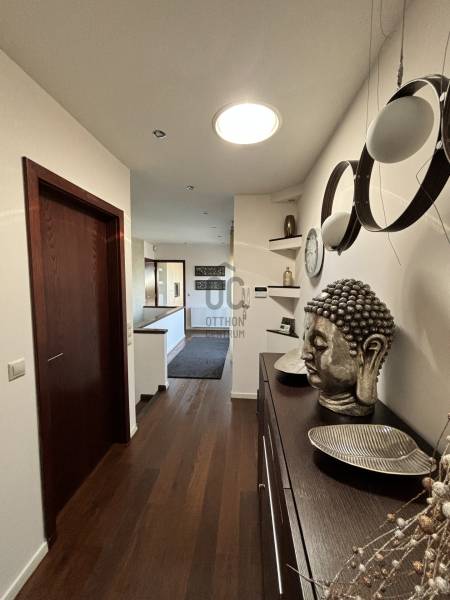 Költözzön zöld környezetbe, mégis elérhető távolságba a belvárostól, ebbe a frissen felújított kétállásos garázzsal, fűtött medencével rendelkező nappali + 3 hálós, prémium minőségben megépített házba. Üdv itthon!RÖVID ÖSSZEFOGLALÓBudapest kedvelt, családi övezetes részén, XV. kerület Rákospalota városrészében, a kerület építési szabályainak megfelelően, egyik oldalon a szomszéd házzal határosan megépített, két szinten összesen nettó 220nm nagyságban, nappali + 3 hálószobával, két fürdővel, rengeteg gardrób pakolási hellyel, kétállásos garázzsal, fűtött medencével ez a ház csak Önre várLegkorszerűbb anyagokból és technológiával épült, energiatakarékos, működéséhez megújuló energiát is használ. Külön szabályozhatóan a medence, a garázsfeljárat, a terasz, de még a ház előtt található gyalogos út is fűtött! Miért prémium ez a ház?- prémium minőségű Daikin hőszivattyú a nappaliban, hűtő fűtő klímaberendezések a szobákban- helyiségenként szabályozható fűtés és hűtés- prémium kül és beltéri nyílászárók, hőszigetelt, elektromos redőny- szigetelt ház, szigetelt tetőtér- elektromos garázskapu- a ház teljes légtere gépi szellőztetéssel ellátva- kamerarendszer- beépített Bang and Olufsen hangrendszer- süllyesztett világítás- mahagóni parketta- egyedi konyha Siemens gépekkel- emeleti folyosó és fürdőszoba fényalagúttal megvilágítva- fűtött kocsibeálló, fűtött utcai járda, fűtött terasz- fűtött medence- hét körös locsoló rendszerA környék kifejezetten kedvelt családok és jövőbeli családalapítók körében. |