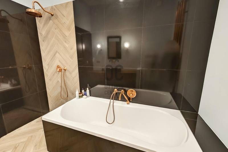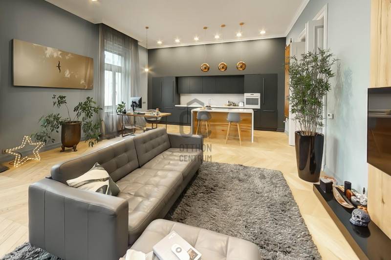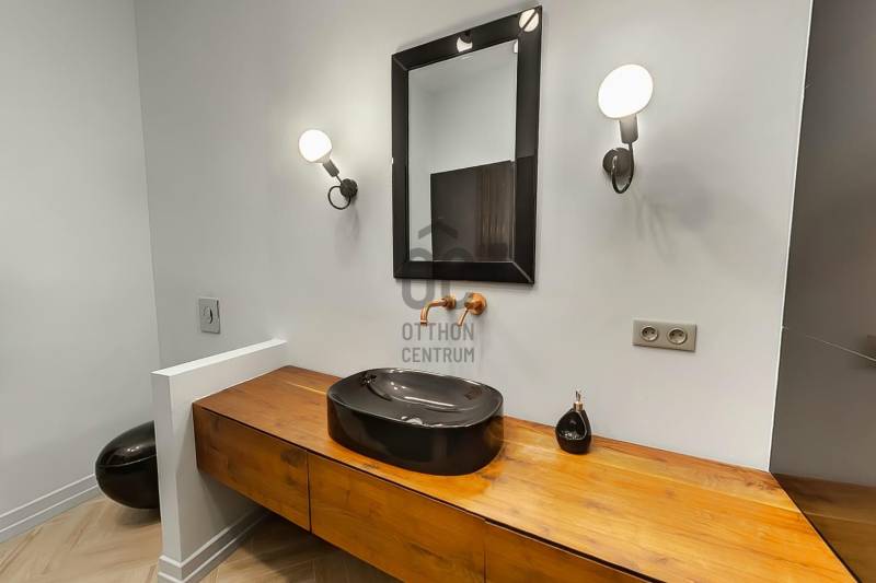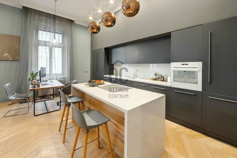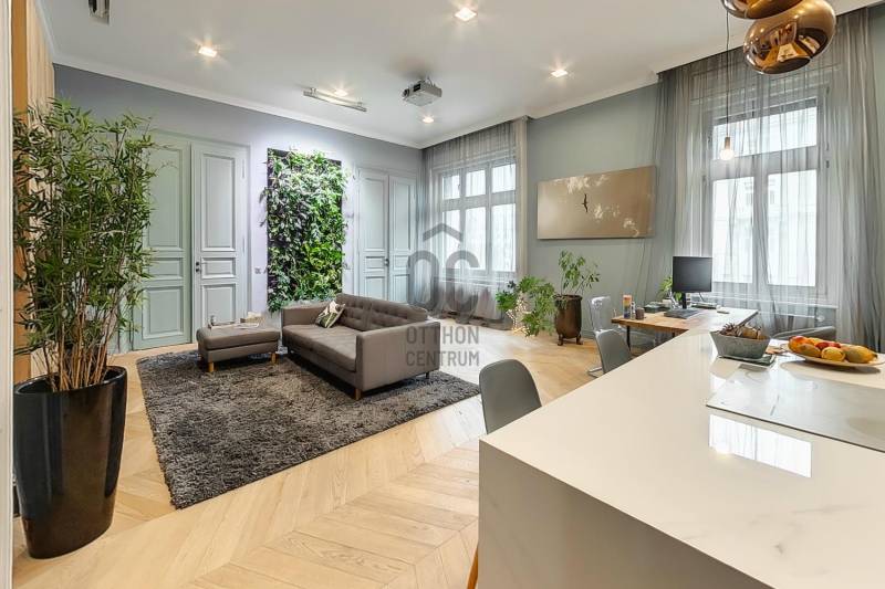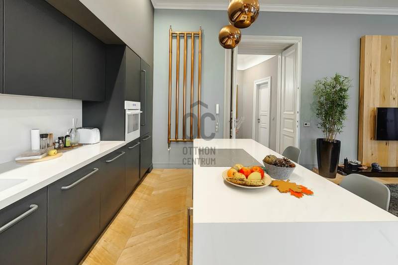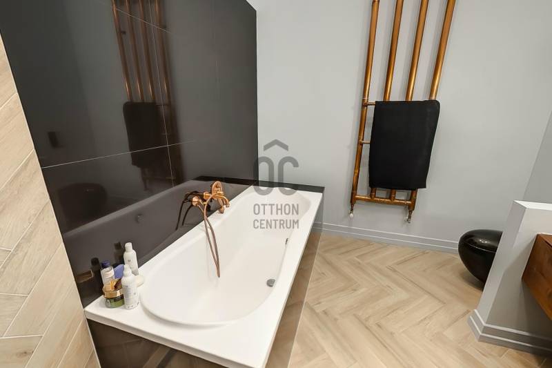 Eladósorba került egy részben DUNAI PANORÁMÁS, LAKBERENDEZŐ ÁLTAL SAJÁT RÉSZRE MEGÁLMODOTT ÉS KIVITELEZETT, nagyon magas minőségben felújított lakás a JÁSZAI MARI TÉREN.A NAPPALI + 2 HÁLÓS ingatlan egy rendezett anyagi hátterű, kiemelkedően jó lakóközösségű LIFTES ház 3. emeletén található, alapterülete pedig 110 nm (tulajdoni lapon 108, ténylegesen 110 nm).A felújítás során tégláig és födémig minden visszabontásra és újjáépítésre került. Kondenzációs cirkó fűtést alakítottak ki, mely részben lapradiátorokon keresztül biztosítja az otthon melegét, ugyanakkor a fürdőben és az előszobában kiegészítő fűtésként PADLÓFŰTÉS is szolgálja a komfortérzetet. A kádas és zuhanyzós fürdőben TÖMÖR DIÓFA mosdószekrény és vörösréz csaptelepek, vörösrézből gyártott radiátor található. Az egyedi tervezésű és gyártású vörösréz radiátorok átfutó motívumai az egész lakásnak, a konyhában és az előszobában szintén találhatók ilyen fűtőtestek (is).A tulajdonos a jelenlegi kazánhelyiséget/mosókonyhát egy 2., zuhanyzós, wc-s fürdőszobává alakítja át. Jelen pillanatban még lehetőség van a burkolatok vevő általi kiválasztására.ELEKTROMOS REDŐNYÖK, és EGYEDILEG GYÁRTOTT GÉPESÍTETT KONYHABÚTOR került beépítésre. A homlokzati nyílászárók fa szerkezetűek HÁROMRÉTEGŰ ÜVEGEZÉSSEL. A konyha-nappaliban egyedi méretű, chevron mintába rakott, NATÚR TÖLGY PARKETTA található és egy AUTOMATA ÖNTÖZŐRENDSZERREL ELLÁTOTT ZÖLDFAL, mely egyedi és üde színfoltja a lakásnak. A TV fal is tömör tölgyfából készült, mely anyag visszaköszön a konyhasziget nappali felőli oldalán, az étkezőasztalon, illetve az előszoba szekrényen.A tulajdonos kérésére a hálószobákról nem készült fotó, de biztosíthatom a kedves érdeklődőket, hogy ott is ugyanolyan a minőség mint a lakás többi részén.A társasház jól karbantartott, rendezett anyagi háttérrel rendelkezik.Iá.: 198 M Ft |