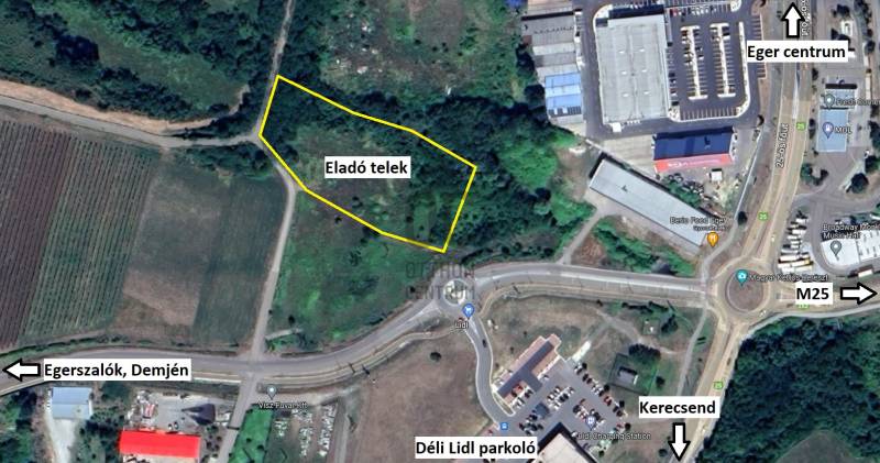 Az Eger-Demjén összekötő út mellett, a kis-körforgalomnál, a Lidl-el szemben eladó egy 6.089 m2-es telek.Kizárólag az Otthon Centrum kínálatában!Egri új építésű lakásra értékegyeztetéssel cserélhető!Pontos elhelyezkedését lásd a képek között található térképen. Déli oldaláról a körforgalomból rá lehet majd csatlakozni, a nyugati oldaláról egy aszfaltozott útról elérhető, északról pedig egy vizes árok határolja.Jelenlegi besorolása szerint \"legelő\" és \"fásított terület\", az egri szabályozási terv szerint belterületbe vonandó, viszont a várható beépítési lehetőségekről csak az átminősítés során lesz döntés (GKSZ, GIP, vagy más).A hasonló területek építési szabályaiból kiindulva a következők szabályok várhatók:- max. 5,5 - 7,5m magasságú épület építhető majd a területre.- 30-40%-ig lesz beépíthető.A telek fölött jelenleg 4db magas feszültségű távvezeték halad át, ezeket a szabályozási terv szerint, a telek hasznosítása előtt majd föld-kábelekkel váltják ki.Minden közmű elérhető az utcán (víz-szennyvíz, gáz, villany).A telek közel sík terület, jó láthatósága és könnyű megközelíthetősége miatt alkalmas lehet áruház, vagy akár gyártó üzem létesítésére is.Az ár irányár, ha lát fantáziát a területben és kíváncsi az átminősítés lehetőségeire, mindenképp hívjon!Ha a hirdetés felkeltette az érdeklődését és további információkat kér, kérem keressen az elérhetőségeim valamelyikén.Ingatlanirodánk teljeskörűen segíti az ingatlanok adásvételét, ügyvéd, bankfüggetlen hitelügyintéző, energetikus és a lelkes ingatlanközvetítő is rendelkezésére áll akár hétvégén, vagy ünnepnapokon is ;-) |