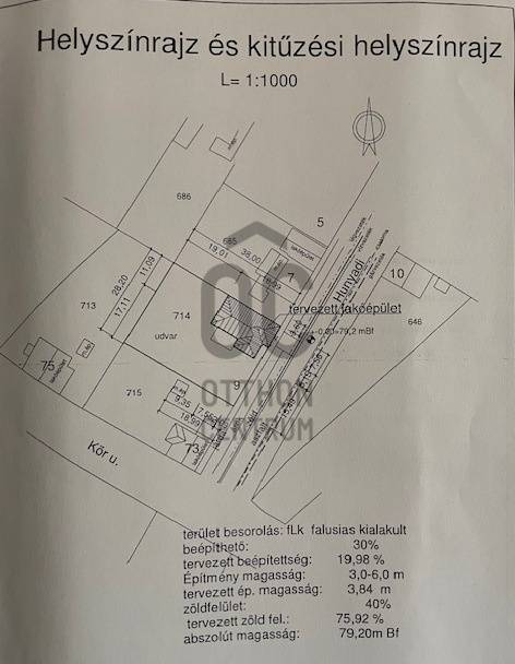 Kedves Érdeklődő!Csongrád-Csanád megyében Kiszomboron a Hunyadi utcában kínáljuk eladásra ezt a téglakerítéssel körbekerített 1078 négyzetméteres telket. A teleken egy családiház teljesen elkészült alapozása található. A tervezett felépítmény látványterve, tervei, a képek között megtalálhatóak. Az új tulajdonosnak már csak folytatni kell a további építkezést. A közműcsatlakozások is beépítésre kerültek. Az elektromos áram víz és csatorna bekötések a telken találhatók. A telek, kivett lakóház udvarként szerepel a földhivatali nyilvántartásban. Beépíthetősége 30%-os. A nagyközség központja 1000 méterre található, autóval 2 perc, kerékpárral 4 perc, míg gyalogosan 14 perc alatt elérhető. A közeli város Makó központja 7 km. Kiszombor és Makó között kiépített kerékpár út található. A buszos tömegközlekedés jó Makóra és Szegedre, 30 percenként, óránként indulnak járatok, buszmegálló 10 perc alatt elérhető gyalogosan. A telek azonnal átvehető.További tájékoztatásért kérem, hívjon bizalommal!Kiszomborról bővebben itt: http://www.kiszombor.hu/kiszomborrol.html Legyen tisztában pénzügyeivel, mielőtt elkötelezi magát! Ebben díjmentesen az Ön rendelkezésére áll bankfüggetlen hitelközvetítőnk.Vevőinket profi és kedvező díjazású ügyvédi háttérrel is segítjük a szerződéskötés során.Az ingatlanról rövid bemutató videó is készült. Ha ezt a hirdetést az Otthon Centrum weboldalán nézi, akkor a videó azonnal indítható a képgaléria elején. Ha egy másik weboldalon találta ezt a hirdetést, kérem, nyissa meg az Otthon Centrum weboldalát, kattintson a „Regisztrációs szám keresése” menü pontra, és írja be ezt a regisztrációs számot a keresőbe: T037131 Itt meg tudja tekinteni az ingatlanról készült videót és még több képet, vagy írjon nekem, és szívesen elküldöm a felvételt, képeket.#Kiszombor #epitesitelek #otthoncentrum #nagytelek #csendesutca #Hagymatikum #Makotol7km #otthoncentrummako #ingatlankozvetitomako #makoingatlankozvetito #makoingatlaniroda #oc #ocingatlan |
