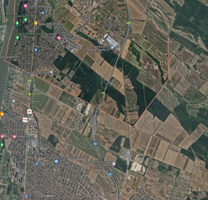 Gödön eladó egy 174.526 nm-es fejlesztési telek közvetlenül az M2-es autópálya egyik csomópontjánál Ipari-kereskedelmi Zónában!A telektől 1 km-re található a SAMSUNG gyár, illetve 12 km-re fekszik az M0-ás körgyűrű, amely bekötő útjain keresztül gyorsan elérhető Budapest belvárosa.Opcionálisan további 8.864nm + 20.000 nm-es terület is megvásárolható a 17,5 ha-on felül.- Építési övezet: a telek GIP-1 besorolásba tartozik; kereskedelmi, ipari, logisztikai csarnoknak alkalmas terület.- Beépíthetőség: 50%- Beépítési mód: szabadonálló- Legkisebb zöldfelület: 35%.- Legnagyobb épület-magasság: 20 m.- Szintterületi mutató: 1,2- Kialakíthetó legkisebb telek méret: 20.000 nm- Közművek: telken-utcában- Ár: 27€/nmAz eladási ár nettó ár, további áfa terheli.Bővebb információért és a megtekintéssel kapcsolatban hívjon bizalommal!Egyedi igényekre szabott lakás-vállalati hitelekkel állunk rendelkezésére. Bankfüggetlen hitelcentrumunk az országban elérhető összes bank és hitelintézet ajánlatát versenyezteti az Ön számára díjmentesen. Munkatársaink nagy szakmai tapasztalattal várják Önt az előre egyeztetett időpontban akár a normál munkaidő után is. |