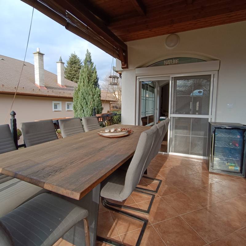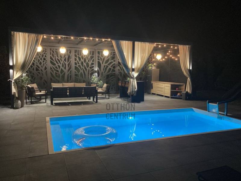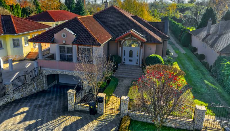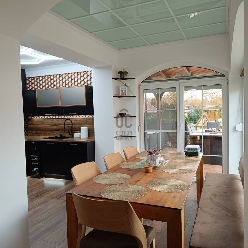 Nagykanizsa legvonzóbb kertvárosi részén földszintes 210 m2-es családi ház, úszómedencével, igényes kialakítással ELADÓ!Nagykanizsa legkedveltebb kertvárosában kínálom megvételre az alábbi prémium minőségű családi házat, a hozzá tartozó 1528 m2 területtel.Csendes, nyugodt mellékutcában, Palin kellemes lakó-pihenő zöld övezetében helyezkedik el az ingatlan. Kedves, barátságos, segítőkész fiatal szomszédság jellemzi a környéket.A kertvárosban óvoda, általános iskola, játszótér, élelmiszer bolt, pizzéria, pékség, gyógyszertár, orvosi rendelő, szolgáltató egységek működnek.Tökéletes választás minden korosztály számára, hiszen innen a városközpont 5 km távolságon belül elérhető, végig kerékpárúton megközelíthető.Ajánlom mindazoknak, aki luxus minőségű ingatlant keresnek, tágas, világos terekkel, hatalmas üvegfelületekkel, energiatakarékos - alacsony rezsi költséggel.Tökéletes elosztásával, prémium minőségű hideg-és meleg burkolatokkal, egyedi tervezésű megoldásokkal igazi gyöngyszem a piacon.Az ingatlan jellemzői:- 2005-ben épült, magas műszaki tartalommal- 210 m2 hasznos alapterületű- a földszint + pinceszint helyiségei: 3 hálószoba, nappali, konyha, étkező- terasz kapcsolattal, előszoba, közlekedő, gardrób, mosókonyha, 2 fürdő-WC-vel, 1 WC, lépcsőfeljáró, garázs stb.-2023-ban felújításra került a konyha, fürdőszobák, WC, előszoba prémium minőségű spanyol burkolatokkal- 3 fázis rendelkezésre áll /3 x 25 A/- ablakok hőszigetelt műanyag szerkezetűek, rolóval, szúnyoghálóval és árnyékolóval felszereltek- a ház fűtését Vaillant gázcirkó kazán végzi, mellyel a helyiségek kellemes temperálását gazdaságosan működteti - hűtő-fűtő klíma a szobákban, nappaliban- a ház riasztó rendszerrel ellátott- öntözőrendszer külön vízórával felszerelt - külső homlokzat 10 cm vastag szigetelést kapott- a ház hátsó, dél- nyugati részén 20 m2 fedett terasz került kialakításra, közvetlen udvar kapcsolattal- CSOK, HITEL igényelhető, melyet bankfüggetlen hitelszakértőnk ingyenesen bonyolít irodánkban A ház alatt található 30 m2 dupla garázs, a házon belül is elérhető, mely elektromos kapuval ellátott. Az udvar 1528 m2 nagyságú, melyen épített, fedett kerti kemence kapott helyet. Az udvar további részén 2023-ban egy impozáns 30 m2 nagyságú úszómedence is kialakításra került. Mellette egy 25 m2 csodaszép fedett kerti pihenőhely biztosítja a családi és baráti összejövetelek önfeledt kikapcsolódását és pihenését.A kertben egy 75 m2 melléképület dupla garázzsal és tároló funkcióval is bővült.Öntöző rendszer kialakított.A telek teljesen körbe kerített, tujasorral beültetett. Ebben a csodaszép házban, minden álma valóra válhat, ne maradjon le róla!Ha hirdetésem felkeltette érdeklődését, várom hívását!Irodánk teljes körű, ingyenes szolgáltatást nyújt kereső ügyfeleinknek.Szakszerű tanácsadással, hitel ügyintézéssel, energetikai tanúsítvány elkészítésével és kedvező díjszabású ügyvéddel nyújtunk segítséget. |