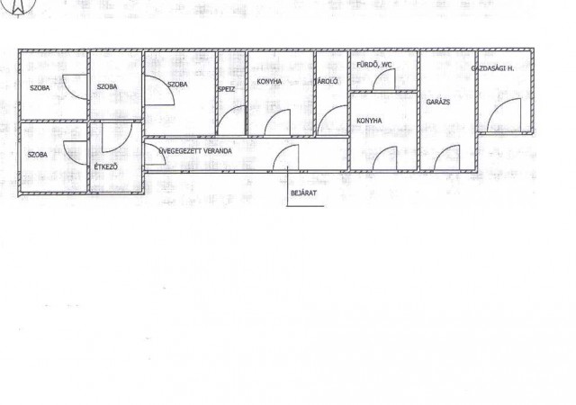 Tágas bels? terek – Összesen 5 szoba, két külön bejáratú lakótér, két konyha, fürd?szoba, kamra, tárolók, és veranda garázs + gazdasági épület.