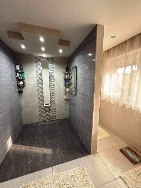 Ebes központjában eladó egy 3 lakásos sorház, középső épülete. A 3 éve teljes felújításon átesett, 258 nm alapterületű ingatlan összesen 3 szintes, kialakítása ideális:Földszint: itt található egy 30 nm-es, átjárható garázs, így a lakáshoz tartozó hátsó telekrész is könnyen megközelíthető, továbbá kialakításra került egy fürdőszoba, háztartási helyiség és kazánház.Emelet: ezen a szinten helyezték el az óriási konyha-étkezőt, nappalit és egy szobát, fürdőszobát és gardróbot.Tetőtér: itt is 2 szoba és egy WC, valamint egy gardrób található.Az épület külső szigeteléssel, műanyag nyílászárókkal rendelkezik, fűtését gázkazán, hűtését 3 db klíma berendezés biztosítja. Az alacsony rezsiről 7 kW-os, akkumulátorral ellátott napelem rendszer gondoskodik. Az utcai és a garázskapu elektromosan mozgatható, az utcafronton fedett kocsi beállót alakítottak ki. A telek hátsó udvara teljes burkolást kapott, így egy óriási teraszként funkcionál, ahol egy nagyméretű, fedett és téliesíthető filagória ad helyet a pihenéshez.Debreceni, jó állapotú lakást 70 millió Ft-ig beszámítunk. CSOK plusz -ra alkalmas, teljeskörű ingyenes hitelügyintézéssel!Ez az ingatlan a \"Felező csomag\" megbízási portfólióhoz tartozik. Részletek az Otthon Centrum weboldalán. |