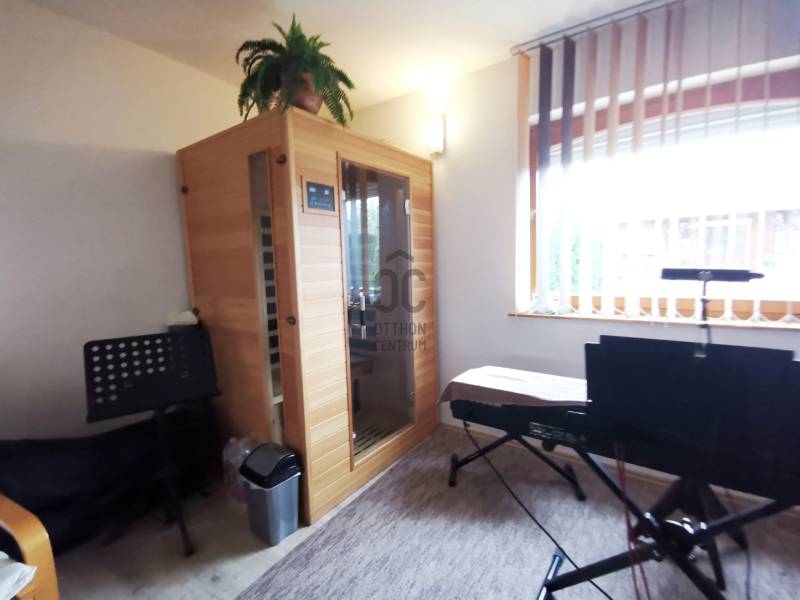 Velence Újtelepen, NAGY FEDETT TERASZOS családi ház, garázzsal, lakható melléképülettel, KÉT GENERÁCIÓNAK vagy SZOLGÁLTATÁSRA is alkalmas kialakítással eladó.A FŐÉPÜLET 90 m2, nagy nappali-étkezővel, közlekedőből különnyíló két szobával. kamrával, fürdőszobával, vendég WC kialakítással épült 1986-ban. 30-as tégla falazattal, vasbeton gerendás födémmel, cserepes lemez héjazattal rendelkezik. Terasz alatt kívülről lejárható pince van. Szoba és nappali hűtő-fűtő klímákkal van felszerelve. A fő fűtés/hűtés mód MEGÚJJULÓ ENERGIÁVAL, FŰTÉS OPTIMALIZÁLT klímával történik, mert mióta 10KW-os napelemrendszert felszereltették, az éves szinten a villamos fogyasztás költsége nullára jön ki.A fűtést gáz cirkó kazánnal is működik.A kerti locsolás fúrt kútról van megoldva.A MELLÉKÉPÜLET 54m2, szerkezete azonos a főépületével. Ide kerültek fel a napelemek.Nagy fedett terasz, 2 szoba, konyha-étkező, fürdőszoba épült egyidőben a főépülettel.Klímás hűtő-fűtő rendszere itt is kifejezetten gazdaságos.környezetVelence kedvelt, csendes családi házas övezete. Bevásárlási lehetőség autóval 5 percre vannak a közeli Velence Korzóban .megközelíthetőségAz ingatlan a 7-es főút csak 2 percre van, sztráda 8 perc alatt elérhető. |