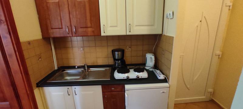 A zalakarosi gyógyfürdő főbejáratától 150 méteres sétatávolságra 1 emeleti üdülőlakás eladó. Innen akár köntösben is átsétálhat. Az ingatlan gyönyörűen parkosított hatalmas udvarral rendelkezik, mely a társasági élet központja lehet.Az elektromos kapuval védett területre minden lakó beállhat járművével.Az 1 emeleti függőfolyosón megközelíthető lakás nyílászárói hőszigetelt műanyagra cserélve, redőnnyel és szúnyoghálóval védettek.A kellemes hőmérsékletről 2 db hűtő-fűtő klíma gondoskodik.A melegvizet új Ariston villanybojler adja. A kényelmes méretű nyugati fekvésű teraszra a nappali-étkezőből juthatunk ki, a pihenésre szeparált hálófülke szolgál.A vételár a teljes berendezést tartalmazza.A zalakarosi gyógy és élményfürdő minden évszakban nagyszerű szórakozást, pihenést nyújt kicsiknek és nagyoknak egyaránt.Zalakaros ideális hely a környék felfedezésére, Keszthely, Hévíz, a Balaton 30 km-re, Nagykanizsa 16 km-re található.Zalakaroson rengeteg szórakoztató program elérhető a családok, párok részére. Kicsik és nagyok is megtalálhatják a neki tetsző szórakozási lehetőségeket.Hívjon bizalommal, egyeztetés alapján rugalmasan megtekinthető ez a remek ingatlan. |