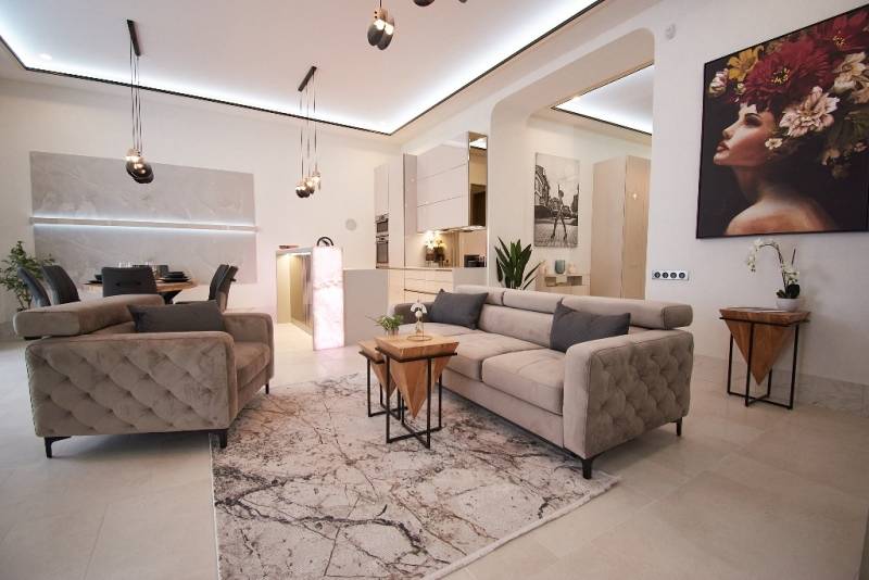 ELADÓ LUXUSLAKÁS A BELVÁROS SZÍVÉBEN!Eladásra kínálunk egy 107 nm-es, 4. emeleti, amerikai konyhás, nappali + 2 hálószobás, 2 fürdőszobás, 2 erkélyes, magas minőségben és egyedi dizájnnal, teljes körűen felújított lakást.Az ingatlan adottságait kihasználva került kialakításra a két szoba két fürdőszobával, illetve egy tágas nappali konyhával és étkezővel. A konyhában található fehér Onyx bárpult változtatható világításával rendkívül hangulatossá varázsolja az egész teret.A nappaliban és a hálószobákban egyedileg tervezett és gyártott bútorok kerültek. A berendezést és a dekorációt egyszerű formák és otthonosság érzését kiváltó pasztelltónusok jellemzik, amelyek modern, elegáns összképet adnak, kerülve a zsúfoltságot.A hálószobákban található ágyak egyedileg ide tervezett kárpit fejvégeket kaptak, melyek mögött led világítások, teszik még izgalmasabbá az enteriőrt.Tömegközlekedéssel is könnyen megközelíthető. Magas bérleti díjjal kiadható!Várjuk hívását!Irodánk Ön számára biztosított kedvezményes szolgáltatásai:- bankfüggetlen hiteltanácsadás- ha ügyfelünk lesz az ingatlan vevője, ingyen elkészíttetjük az energetikai tanúsítványt Ügyvédi szolgáltatások féláron elérhetők! |