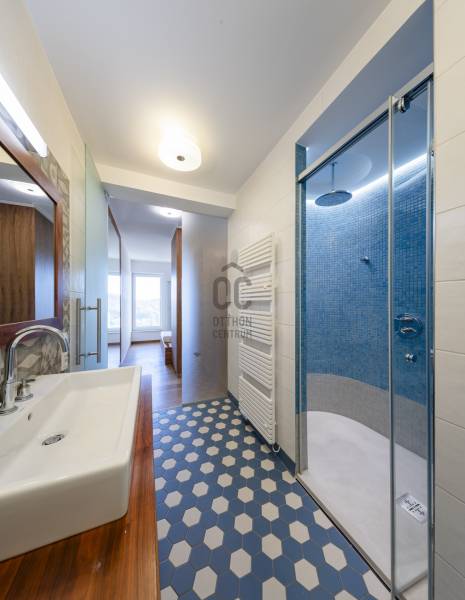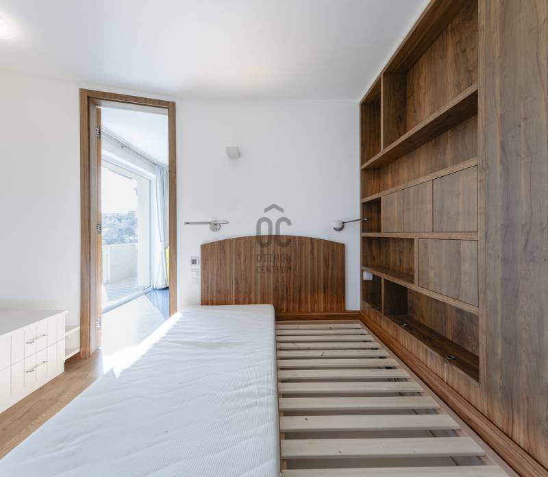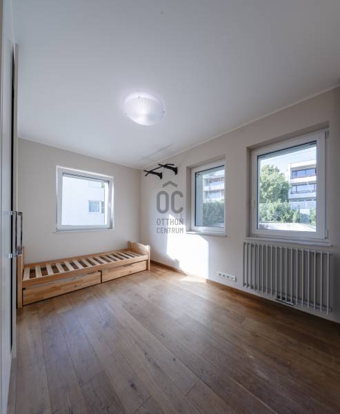 Kiadó Rózsadombon a Bimbó úton egy nyolc lakásos társasház 108 m2-es nappali + három hálószobás lakása.Az ingatlan részben bútorozott. Mindenhol magas minőségű asztalos által készített beépített bútor található, nappaliban kőrisfa furnér, a hálószobában oliva furnér. Valamint tartalmazza az ágykeretet is.A konyhában minden gép megtalálható ami a kényelemhez kell. Beépített sütő, főzőlap. hűtő, mélyhűtő és mosogatógép.A nappaliból csodás panoráma tárul elénk, amit akár a nagy méretű erkélyről is csodálhatunk.A szülői hálóhoz külön épített zuhanyzós fürdőszoba valamint beépített gardrób tartozik.A gyerek szobák mellett kádas fürdőszoba található.Igényesen kialakított, magas minőségű gépészeti megoldásokat tartalmazó lakás. A lakás hűtéséről és fűtéséről H tarifára kötött egyéni hőszivattyú gondoskodik. Padló fűtés és mennyezet hűtés. Igény esetén radiátoros fűtés is. A nappaliban még található egy nagy teljesítményű split klíma , amely a friss levegő keringetésére is alkalmas. A hőmérséklet központilag helységenként szabályozható.A melegvíz ellátásról gázcirkó gondoskodik.Az ár tartalmazza a mélygarázsban található dupla parkolót is ( 3 fázis gyorstöltővel). Valamint a közel 5m2-es tárolót is. A társasház ápolt kertje tökéletes hely a pihenésre, játékra a kicsiknak. |