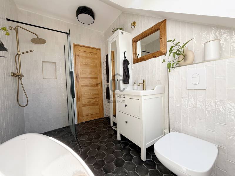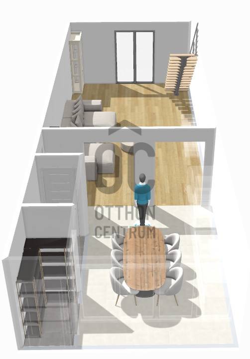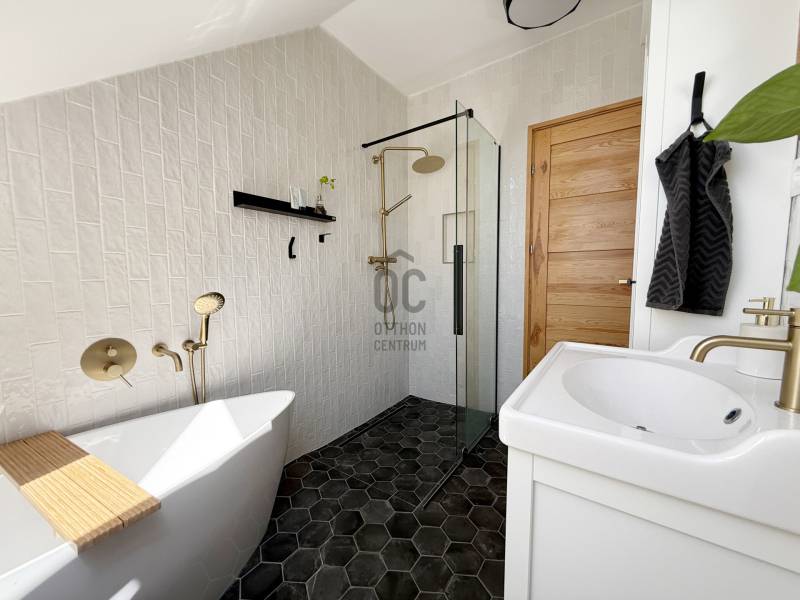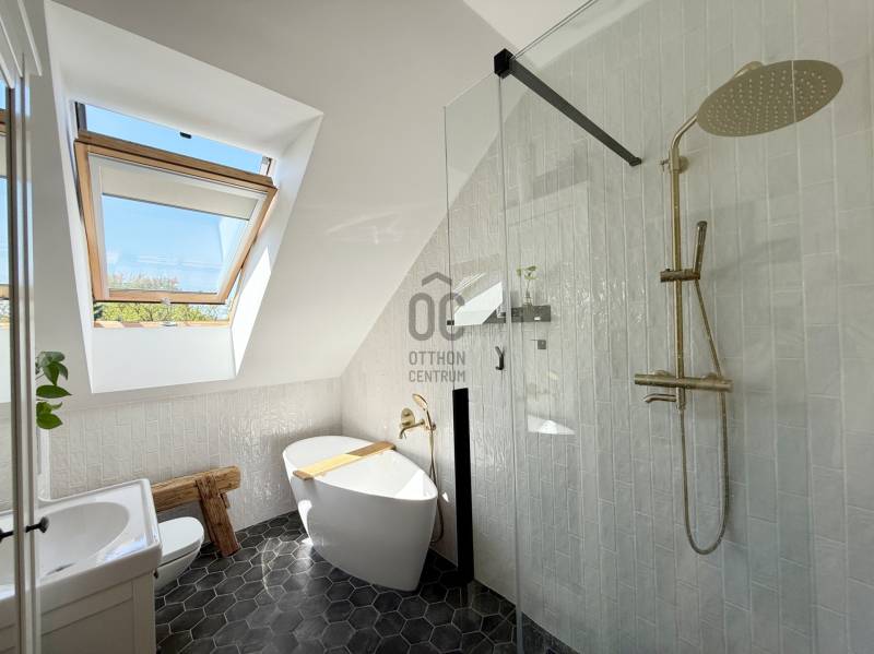 Eladásra kínálunk egy 2023-ban épült, modern emeletes sorházat Burgundia városrészben, saját elő- és hátsó kerttel. Az ingatlan egy zsákutcában található, közvetlenül a Ligeti-tó és a kerékpárút mellett, a Duna és az ártéri erdő közelében, így nyugodt, természetközeli környezetben kínál otthont, ugyanakkor könnyen megközelíthető marad.A ház kialakítása kifejezetten családok számára ideális. A földszinten tágas nappali, konyha-étkező kamrával, valamint külön WC kapott helyet, az emeleten pedig két hálószoba és egy félszoba – jelenleg gyerekszobaként használva – található. A fürdőszoba szintén az emeleten került kialakításra. A tárolási lehetőséget padlás, hőszigetelt tetőtér és külön kertitároló biztosítja, emellett műhely is tartozik az ingatlanhoz.Az épület Porotherm téglafalazattal és grafitos hőszigeteléssel készült, a közös falak hangszigeteléssel vannak ellátva. Háromrétegű fa nyílászárók, szúnyoghálóval és redőnnyel felszerelve, valamint minőségi szaniterek (Geberit, Grohe, Roca) emelik a komfortérzetet. A ház korszerű műszaki felszereltségéhez tartozik a távolról vezérelhető Gree légkondicionáló és fűtési rendszer, továbbá a napelem és az elektromos autótöltés előkészítése. Kandalló kiépítésére is van lehetőség.A biztonságról riasztó- és kamerarendszer gondoskodik, a kertben pedig fúrt kút szolgálja a fenntartható öntözést. A saját autóbeálló kényelmet nyújt, miközben a környék természeti adottságai bőséges lehetőséget biztosítanak a pihenésre és az aktív kikapcsolódásra.A modern építőanyagok, a praktikus elrendezés és a korszerű technikai megoldások révén ez az ingatlan hosszú távon is kényelmes és értékálló otthont kínál.(Az ingatlan tulajdoni lap szerint 2 szobás, 74 nm-es) |