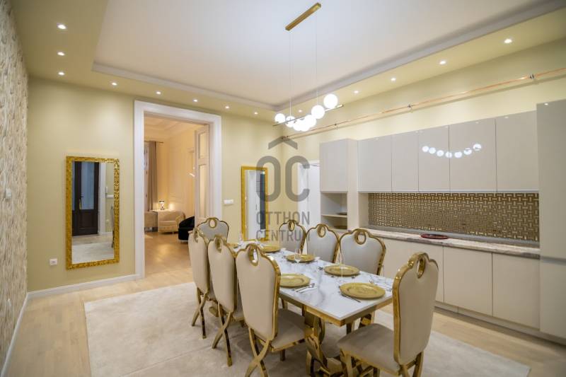 Kiadó luxus polgári lakás az Andrássy úton!Az Andrássy út eleganciáját és történelmi hangulatát ötvözi ez a 160 m²-es, 4 szobás, teljes körűen felújított, napfényben úszó polgári lakás, amely a klasszikus értékeket és a modern kényelmet egyaránt képviseli. Az 1. emeleten elhelyezkedő ingatlan tágas nappalival és 3 hálószobával rendelkezik, belmagassága eléri a 4 métert, amit a gyönyörű gipszstukkók és a spalettás polgári ablakok tesznek igazán impozánssá.A lakás utcai nézetének köszönhetően világos és napos, a hozzá tartozó TERASZ pedig különleges ritkaság a környéken. A belső terek teljesen berendezve, modern és stílusos bútorokkal várják új bérlőjüket, a konyha és a fürdőszoba minden szükséges géppel felszerelt. A lakás műszaki tartalma is a kényelmet szolgálja: gázcirkó fűtés és klímaberendezés gondoskodik az optimális hőmérsékletről.A társasház , lifttel rendelkezik, a belső udvarban pedig PARKOLÁSI LEHETŐSÉG biztosított.A lakás minden részlete új, így a bérlő egy elegáns, kifogástalan állapotú otthonba költözhet be azonnal.Az épület a főváros egyik ikonikus, reprezentatív palotája, amely a 19. század végén épült a sugárút fénykorában. A ház homlokzatát gazdag díszítés, elegáns arányok és impozáns ablakok jellemzik, belső terei a klasszikus polgári hangulatot idézik. Az Andrássy út központi elhelyezkedése miatt a ház közvetlen közelében megtalálhatók a város legnívósabb éttermei, kávézói, divatházai és kulturális intézményei, így az itt bérelhető lakás nem csupán otthon, hanem igazi életstílus is.Számos Éttermek és kávézók: Művész kávéház, Callas Café & Restaurant,Bombay Curry Bar,Hoppá! Bistro,Nem utolsó sorban az OPERA pár perc séta távolságban.A lokáció kiemelkedő: a belvárosi környezet egyszerre nyugodt és pezsgő, kiváló közlekedési lehetőségek: M1, Busz 105, 210, Deák Tér Reptéri Busz 100E, és villamosmegállók (4,6 pár perc sétára.Bővebb információért és a megtekintéssel kapcsolatban hívjon bizalommal! |