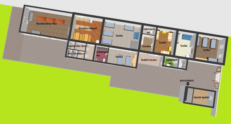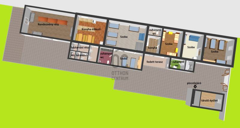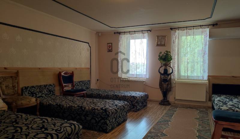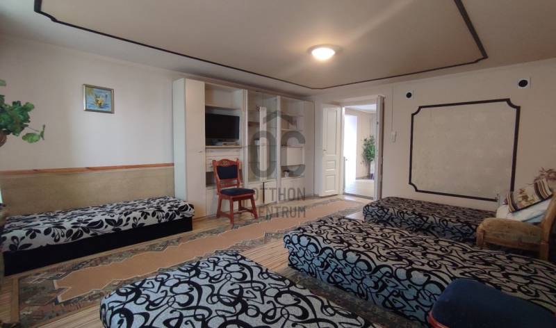 Sárkeszi központjában kínálunk megvételre egy összközműves, többfunkciós ingatlant, amely tökéletes választás lehet nagycsaládosoknak, befektetőknek vagy vállalkozóknak is. Az ingatlan három különálló lakrészből, egy modern rendezvényépületből és egy külön melléképületből áll, mindez egy 1097 m²-es, parkosított telken található.✅ Kinek ajánljuk?•Többgenerációs családoknak•Befektetőknek – kiadásra, vendéglátásra•Vállalkozóknak – irodának, rendezvényhelyszínnekIrányár: 74.720.000 Ft+ ÁfaFőépület jellemzői (255 m²):•Az 1950-es években épült, vegyes falazatú ház 2005-ben bővítve lett, jelenleg 3 külön lakrészből áll, mindegyik saját fürdőszobával.•Közös használatú, tágas 31,4 m²-es konyharész és külön mellékhelyiség szolgálja a lakók kényelmét.•2010-ben a tetőszerkezet teljes cseréje megtörtént: új gerendák és cserépfedés.•Fűtés: korszerű, 1 éves Bosch kondenzációs gázkazán radiátoros hőleadással.•Hűtés-fűtés klímával: 4 db GREE hűtő-fűtő klíma az elmúlt 1–2 évből 2db 5,3KW és 2db 2,6KW-os•Melegvíz-ellátás lakrészenként külön villanybojlerekkel (80L, 50L, 300L).•A fürdőszobák igényesen felújítottak, modern burkolatokkal és szaniterekkel.•Az épület folyamatosan karbantartott, azonnal költözhető.Hátsó épület (társalgó 54 m²):•2021-ben épült, ytong falazattal, fa tetőszerkezettel, cserepes lemez héjazattal.•Jelenlegi funkció: társalgó / rendezvényhelyiség, de akár külön lakóegységként vagy vállalkozási célra is kiválóan hasznosítható. Melléképület + pince:•18 m²-es különálló tárolóépület található az udvaron, alatta pince is rendelkezésre áll.•Tárolásra, műhelynek vagy akár hobbihelyiségnek is ideális.Telek és közművek:•Telekméret: 1097 m² – parkosított, gondozott kert, több autó számára udvari beállási lehetőség.•Összközműves ingatlan: víz, villany, csatorna, gáz bevezetve.KÉRDÉS A FINANSZÍROZÁS?- Amennyiben hitelre lenne szükséged bank-független tanácsadónk díjmentesen versenyezteti minden bank és hitelintézet kínálatát, hogy számodra a legmegfelelőbb konstrukciót találjuk meg.További információért, megtekintésért keressen bizalommal! |