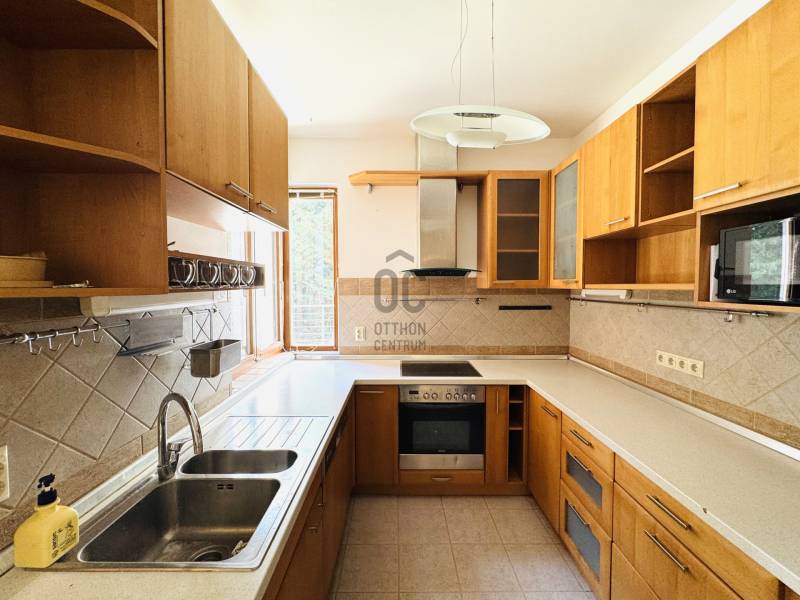 Széphalmon, a Budai Tájvédelmi Körzet közvetlen szomszédságában kiadó egy bájos, háromszintes családi házEgy csendes, forgalomtól védett kis utcában, a természet közelségében, mégis kiváló közlekedéssel kínáljuk bérbe ezt a 900 m²-es telken álló, 280 m²-es, igényesen kialakított családi házat.A ház három szinten biztosít kényelmes életteret:Alsó szint: kiszolgáló helyiségek, új kazán, központi porszívó, mosókonyha, zuhanyzós fürdőszoba, valamint egy külön bejárattal rendelkező apartman – ideális többgenerációs együttéléshez vagy vendégek fogadására. Itt található továbbá egy kb. 30 m²-es wellness-részleg gyönyörű fény-szaunával és zuhanyzóval, illetve a háromállásos garázs is.Első szint: a ház központi tere egy lenyűgöző, kb. 55 m²-es, nagy belmagasságú nappali, impozáns gerendákkal és hangulatos cserépkályhával, amelynek felső része pizzakemenceként is használható. A nappalihoz étkező és konyha kapcsolódik. Ezen a szinten két hálószoba és két fürdőszoba található.Felső szint: három további hálószoba, egy tágas családi gardrób és két fürdőszoba szolgálja a lakók kényelmét.A ház felszereltsége minden igényt kielégít: riasztórendszer, hűtő-fűtő klímák, központi porszívó, tágas terasz és bőséges tárolási lehetőségek állnak rendelkezésre.A környék biztonságos és családbarát, közelben a francia és amerikai iskola, óvodák, sportlétesítmények, uszoda, játszóterek, kávézók és éttermek érhetők el. A Hűvösvölgy tramvégállomás néhány perc alatt megközelíthető.A természet szerelmeseinek különösen vonzó a Budai Tájvédelmi Körzet közelsége és a Hármashatár-hegy közvetlen elérhetősége.Bérleti díj:2.200 EUR / hóRezsi:kb. 60.000 Ft / hó átalány (víz, gáz, villany) – kedvező fenntartási költségekFeltételek:minimum 2 éves bérleti időtartam, megbízható bérlők részére, kisállat hozható. |