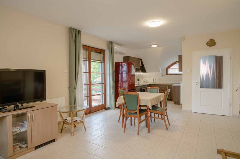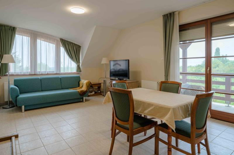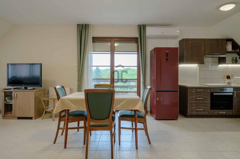 Eladásra kínálunk egy 71 m²-es, hangulatos, erkélyes lakást Alsópáhok rendezett, csendes lakóparkjában saját parkolóhellyel.Az ingatlan praktikus elrendezésének köszönhetően kiváló választás állandó otthonnak vagy nyaralónak.Az előszobában és a nappaliban kerámia padlóburkolat van, a két hálószobában padig parketta.Erkély panorámával2 kényelmes hálószobaTágas nappali-konyha-étkező egy légtérbenFürdőszoba és Wc egy helyiségbenModern konyhai gépek (főzőlap, sütő)A lakás műszaki tartalma:- Vaillant gaz kazán, klíma- Dupla üvegű hőszigetelt fa nyílászárók- Redőny és szúnyogháló minden ablakonA lakópark:- Elektromos kapuval zárt- Rendezett, gondozott kert.A csendes, biztonságos környezet, egyedülálló lehetőséget kínál azoknak, akik kellemes környezetre vágynak.Az alaprajz tájékoztató jellegű. |