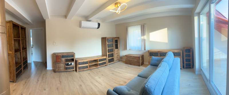 Kiadó igényes, felújított lakás Rómaifürdőn!Közösköltség nincs!Rómaifürdő zöldövezeti részén, a strand közelében, hosszú távra kiadó egy különleges hangulatú, második emeleti, teraszos 75m²-es, nappali + 2 szobás lakás egy háromlakásos házban. Az ingatlan nemrég esett át teljes körű felújításon – minőségi kivitelezéssel, modern gépészettel és igényes belső kialakítással.Főbb jellemzők:•tágas, világos nappali•modern, gépesített konyha (mosogatógép, sütő, főzőlap, beépített mikró és hűtő, páraelszívó)•kádas fürdőszoba•előszoba beépített szekrénnyelExtrák:* Bútorozott ( egyik hálószoba üres)•3 rétegű ablakok redőnnyel és szúnyoghálóval, a nagy üvegfelületeknél motoros működtetés•Hőszivattyús padlófűtés + mennyezethűtés – mindkettő egyedi mérővel•Egyedi víz- és villanyfogyasztás•Parkolás az utcán ingyenesenElhelyezkedés:•34-es buszmegálló: 3 perc•HÉV (Rómaifürdő): 7 perc séta•Nyugodt környezet, mégis kiváló közlekedés |