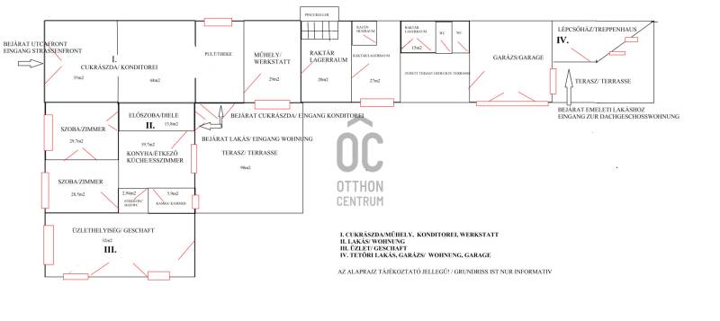 RITKA LEHETŐSÉG A BALATONTÓL CSUPÁN 13 KILOMÉTERRE, AZ M7 AUTÓPÁLYÁTÓL 10 PERCRE. LEGYEN AZ ÜZLETI VÁLLALKOZÁS VAGY TÖBBGENERÁCIÓS CSALÁDI OTTHON, BEFEKTETÉSI LEHETŐSÉG NAGYPOLGÁRI LAKÓHÁZ, KÜLÖN BEJÁRATÚ 2 ÜZLETHELYISÉG, CUKRÁSZDA ESZTÉTIKUS VENDÉGTÉRREL, MŰHELLYEL, PINCÉVEL, RAKTÁRHELYISÉGEKKEL, KÜLÖN BEJÁRATTAL RENDELKEZŐ LAKÁS DUPLA GARÁZZSAL ELADÓ. A Balatontól csupán 13 kilométerre délre, Marcali központjában található ez a kivételes ingatlan, amely ideális választás mindazok számára, akik egy tágas, családi otthont keresnek, vagy befektetési céllal szeretnének ingatlant vásárolni. A 449 nm nagyságú tégla épületegyüttes 1364 négyzetméteres telken helyezkedik el, így bőséges helyet biztosít a családi élethez és a szabadidős tevékenységekhez. Az ingatlanban összesen 6 szoba található, melyek közül a tágas nappali és a világos hálószobák ideális környezetet biztosítanak a pihenéshez és a feltöltődéshez. A 112 négyzetméteres terasz lehetőséget ad arra, hogy élvezze a szabadban eltöltött időt. Az ingatlan jó statikai állapotú, gáz cirkó fűtéssel rendelkezik. A két garázsban 3 autó kényelmesen elfér. A ház elhelyezkedése ideális, hiszen a környék biztonságos, könnyen megközelíthető. A közlekedési lehetőségek is kedvezőek: a közeli buszmegállókból rendszeres járatok indulnak a Balaton irányába és a környező településekre. AZ INGATLAN FŐBB JELLEMZŐI:- városközponti elhelyezkedés- kiváló megközelíthetőség- masszív tégla épület ( a lakóház 1950-ben épült, 1994-ben felújításra került)- az új épület tetőtér beépítésel 1998-ban került átadásra (garázs, tetőtéri lakás)- megújult cseréppel fedett tető (1994)- a tetőtér a 4 méteres belmagasságnak köszönhetően igény szerint beépíthető- központi fűtés gázkazánnal- a meleg vizet gázbojler biztosítja- ipari áram, 3 fázisI. LAKÓHÁZ:- földszintes tégla épület, tágas terekkel- 112 nm hasznos alapterület- teraszkapcsolatos előszoba- konyha/étkező- kamra- fürdőszoba/WC- 2 nagy méretű lakószobaII. ÜZLETHELYISÉG- közvetlen utcafrontról megközelíthető- 2 önálló bejárattal rendelkezik- 32 nm alapterület- mosdó/WC helyiség- kedvező DNY-i fekvés- utcafronti panoráma ablakIII. CUKRÁSZDA, ÜZLETHELYISÉG MŰHELLYEL, PINCÉVEL, RAKTÁRAKKAL- a neves Kandler Cukrászda 1934-től 2012-ig működött az épületben- egyedi kialakítású vendégtér, közvetlen utcafronti kapcsolattal (78,5 nm)- 60 férőhely a belső térben- 98 nm részben fedett terasz, kerthelyiség 50 fő vendég elhelyezést is biztosíthatja- üzlet kiszolgáló pulttal, alatta kis pince ( 5nm)- üzlethez kapcsolódó helyiségek: előkészítő műhely, pince, sütő,hűtőkamra, raktár (udvari bejárattal is rendelkezik), összesen 80nmIV. KÜLÖN BEJÁRATÚ, PRÉMIUM MINŐSÉGBEN MEGÉPÍTETT LAKÁS, DUPLA GARÁZZSAL, TÁROLÓVAL- földszinten dupla garázs elektromos kapuval ( 36nm)- 2 táróhelyiség, kazánház, 2 vendég WC (összterület 50 nm)- fedett terasz (12nm)- esztétikus, gránittal burkolt lépcsőház vezet a felső lakótérbe- a tetőtéri lakás 97 nm alapterületű: egy légtérben kialakított nappali/étkező, konyhasarok, hálószoba, fürdő/WC, tetőterasz (12nm)- egyedi belsőépítészeti kialakítás, gránit burkolatok- szépen gondozott, örökzöldekkel beültetett 1.384 nm nagyságú udvar- teljesen körbe kerített- kovácsoltvas kapu, esztétikus kőfalkerítés- önálló garázs aknával kialakítva (20nm)- a hatalmas diófa kellemes árnyékot biztosít a legnagyobb nyári melegben is- a 2 garázsban 3 férőhely áll rendelkezésre, a belső zárt udvarban további 5 férőhely, így az autók biztonságban parkolhatnakAz ingatlan jelenlegi állapotában is lakható, a lakóház és műhely esztétikai felújítást és modernizálást igényel. Sokrétű hasznosítást biztosíthat az ingatlan leendő tulajdonosának: kényelmes, többgenerációs otthon, akár társasházzá bővíthető, akár panzióvá alakítható illetve több üzletből álló komplexum is kialakítható. A környék előnyös adottságaira is érdemes figyelmet fordítani. Az autóval közlekedők számára könnyen megközelíthető, a tömegközlekedési lehetőségek is kiválóak. A belváros biztonságos, jól kiépített, városi, de mégis zöld környezetben élhetnek itt a lakók.Az ingatlan per- és tehermentes, rövid időn belül birtokba vehető.A lakóház bútorzata és az egykori cukrászüzem teljes berendezése külön megállapodás tárgyát képezi.Az adatok és alaprajz tájékoztató jellegű.Marcali egy dinamikusan fejlődő fürdőváros, a Balatontól 13 kilométerre délre, a 68-as főút mentén. Az M7-es autópályától könnyen megközelíthető. Kerékpárút köti össze a Balaton-parttal, egész évben nyitva tartó gyógyfürdővel és stranddal is rendelkezik.Számtalan bevásárlási lehetőség (LIDL, ALDI, TESCO, Spar, Penny, DM), kórház, háziorvosi szolgálat, bankok, közintézmények, alap- és középfokú iskolák, óvodák, bölcsőde, több park, éttermek, cukrászdák, üzletek, teljesen megújult városközpont biztosítja a lakosok kényelmét. A város a Dél-balatoni borút részeként kiváló szőlő- és gyümölcstermesztő területtel is rendelkezik. A legközelebbi nagyobb városok Fonyód, Keszthely, Hévíz, Zalakaros 25 kilométeren belül elérhetők. Amennyiben felkeltette érdeklődését ez a remek lehetőség, ne habozzon keresni minket. Szakértő csapatunk készséggel áll rendelkezésére, hogy segítsen Önnek a legjobb döntés meghozatalában, legyen szó akár az ingatlan megtekintéséről, akár a vásárlási folyamatról. B |