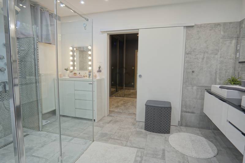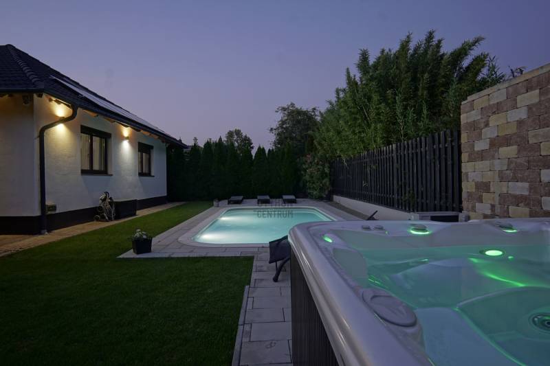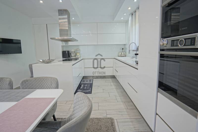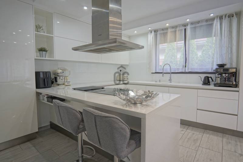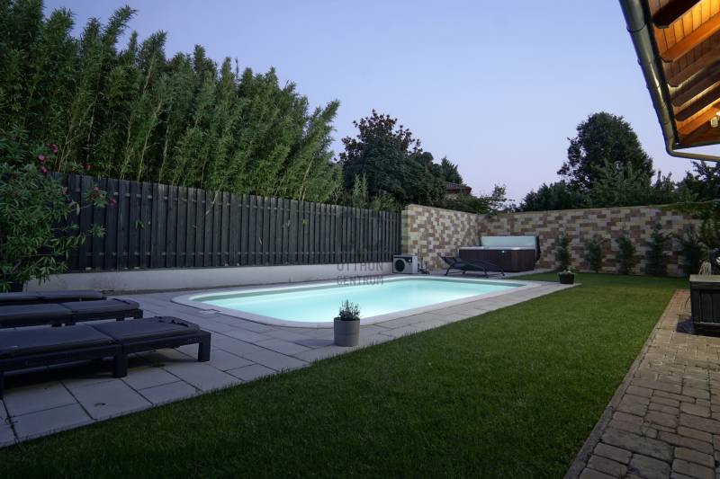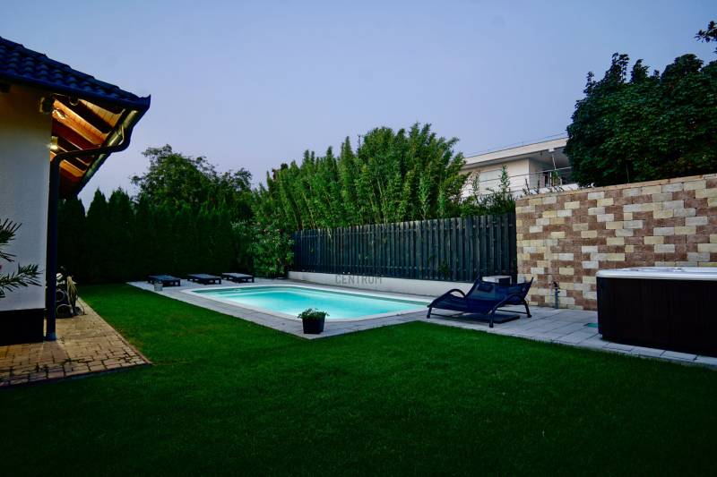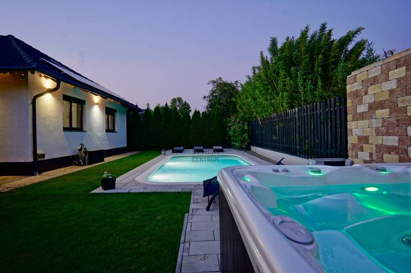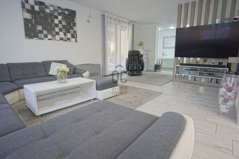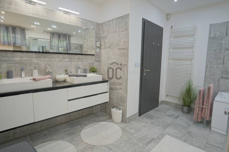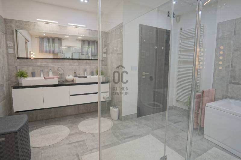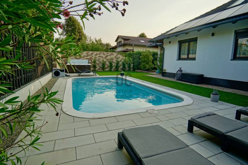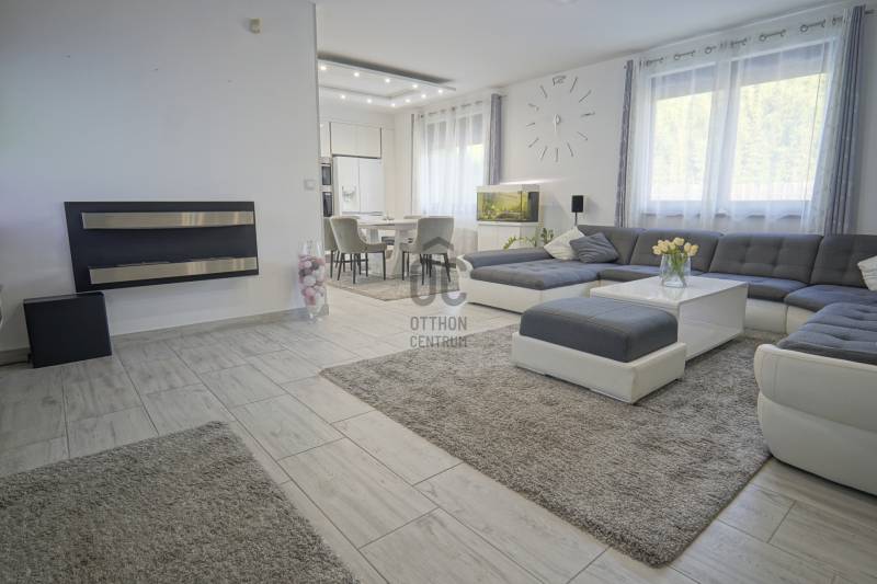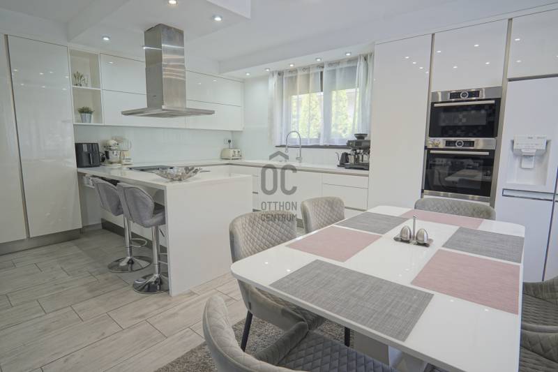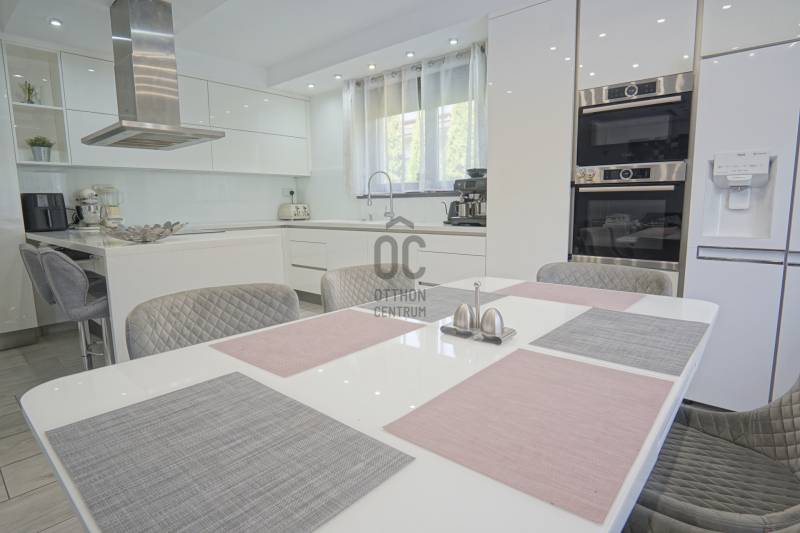 Dunakeszi az északi agglomeráció központja, egy rendkívül gazdag kertváros a Duna szomszédságában Budapesttől mindössze 15 km-es távolságra, így a Főváros zajától távol, ám attól karnyújtásnyira.Számos területi fejlesztés színteréül szolgál, dinamikus fejlődésével kitűnik a környező városok közül. Híres jó nevű iskoláiról, pezsgő Dunaparti életéről, szabadstrandjáról, csárdáiról , modern játszótereiről, kiváló közlekedési feltételeiről, valamint természeti adottságainak átgondolt hasznosításáról. Innovatív városfejlesztési közé tartozik a tavalyi évben átadott DIÁKNEGYED, mely az országban egyedülálló középiskola komplexum!Itt, a város presztízs lakóparkjában, a díszburkolt sétálóutcáknak, rendezett portáknak és nívós, fiatal építésű házaknak otthont adó Tóváros lakóparkban, annak is a legszebb utcájában a Tó-tól pár lépésnyire került eladósorba egy minden igényt kielégítő CSALÁDI OTTHON. Különálló családi ház, egészséges méretű 710m2-es gyönyörűen parkosított telken fekszik, kertjében dísznövények, virágoázisok, MEDENCE (4x8m hőszivattyús!), jakuzzi szolgálja a pihenést teljesen intim környezetben!NEM HIVALKODÓ, a klasszikus formavilág köntösébe bújtatott luxus csak a Családé!A nagy alapterület MINIMÁLIS FENNTARTÁSI KÖLTSÉGET emészt, így kiváló konstrukció!Br.290m2-én átgondolt, ÉLTRE SZABOTT elrendezés valósult meg:Földszinten: DUPLAGARÁZS, mosókonyha, előszoba, tágas amerikai konyhás nappali-étkező, fürdőszoba, hálószoba, lépcsőtér valamint a szülői lakrész kapott helyet. A szülői lakrész diszkréten szeparált hálószoba saját fürdőszobával valamint gardróbszobával.Emeleten: 3 nagy méretű hálószoba, tágas fürdőszoba és közösségi tér-nappali kapott helyet.Az egyébként is fiatal ház teljeskörű felújításon esett át, ekkor egészítették ki a hőszabályozást fain coil-os hűtés-fűtéssel amit a 13kW-os napelemrendszer biztosít! Áramfogyasztás forintban: 0!!!Nagy, világos élhető terek, tökéletesen funkcióra, családra szabott otthon luxus környezetben!Tökéletes választás nagycsaládosoknak, családalapítás előtt állóknak és azoknak akik NEM KÖTNEK KOMPROMISSZUMOT és mind a terület mind pedig az otthon amit keresnek presztízsértékű és maximálisan pihenésre szabott kell legyen! |