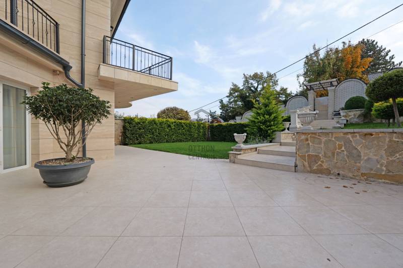 Kivételes lehetőség családosok számára, a 2/A kerület TOP ingatlana!Budapest 02/A kerületének csendes, kertvárosi részén, Adyligetben kiadó egy lenyűgöző, prémium kivitelezésű, 5 hálószobás luxusvilla, amely ideális otthona lehet egy nagyobb családnak vagy akár befektetési célokra is tökéletes választás. Az ingatlan alapterülete 597 nm, míg a telek mérete 922 nm, így bőséges teret biztosít a kényelmes életvitelhez. Az ingatlan egyedi hangulata miatt több filmforgatás helyszíneként is ismert. A bentlakó személyzet a külön bejáratú, intim 75 nm-es felszerelt, két szobával rendelkező lakrész kényelmét élvezheti.További jellemzők:- fantasztikus örökpanoráma- hőszivattyú, H tarifa- luxus minőségű külső és belső burkolatok- egy beltéri és egy kültéri, fűtött medence- tágas szauna- 123 nm-es partyszoba- külön bejáratú személyzeti lakásA ház kiváló, azonnal költözhető állapotban várja új lakóit, modern hőszivattyús fűtéssel és klímával felszerelve, hogy az év minden szakaszában kellemes hőmérsékletet biztosítson. Az ingatlan belső tereit tágas terek uralják, ideális helyszín a családi összejövetelekhez és reprezentáláshoz. Az ingatlan elegáns stílusú kialakítása, a beépített bútorok és szekrények, valamint a LED hangulatvilágítás \" old money\" eleganciát és stílust kölcsönöznek a tereknek. A házban található 5 fürdőszoba garantálja a kényelmet és a magánszférát minden családtag számára.A lenyűgöző kertben az automata öntözőrendszer folyamatosan biztosítja a növények életerejét, az elvehetetlen panoráma pedig exkluzív látványt nyújt minden irányból. A szabadidő eltöltésére a szauna, partyhelyiség és a medencék nyújtanak lehetőséget.Kérés esetén ingatlanvideó kiküldése lehetséges!A környék biztonságos és csendes, ideális a családok számára, akik a város zajától távol, mégis könnyen megközelíthető helyen keresnek otthont. Nemzetközi iskolák megtalálhatóak a környéken. A közlekedés kiváló, hiszen a közelben található tömegközlekedési lehetőségek gyors és kényelmes eljutást biztosítanak Budapest belvárosába. Az autós közlekedés is egyszerű, a főbb közlekedési útvonalak könnyen elérhetők, a városközpontba 10-15 perc alatt eljuthatunk.Ez az ingatlan nem csupán egy otthon, hanem egy életstílus megtestesítője, amely egyedi tervezésével és exkluzív megoldásaival minden igényt kielégít. A biztonsági ajtó és a riasztórendszer maximális védelmet nyújt, míg a videókaputelefon és a videós biztonsági rendszer a modern technológia kényelmét biztosítja. Amennyiben érdeklik a részletek, vagy kérdései merülnének fel ezzel az egyedülálló ingatlannal kapcsolatban, kérem, ne habozzon! Bizalommal kereshet bármilyen információval, és örömmel állok rendelkezésére, hogy segítsek Önnek megtalálni álmai otthonát. |