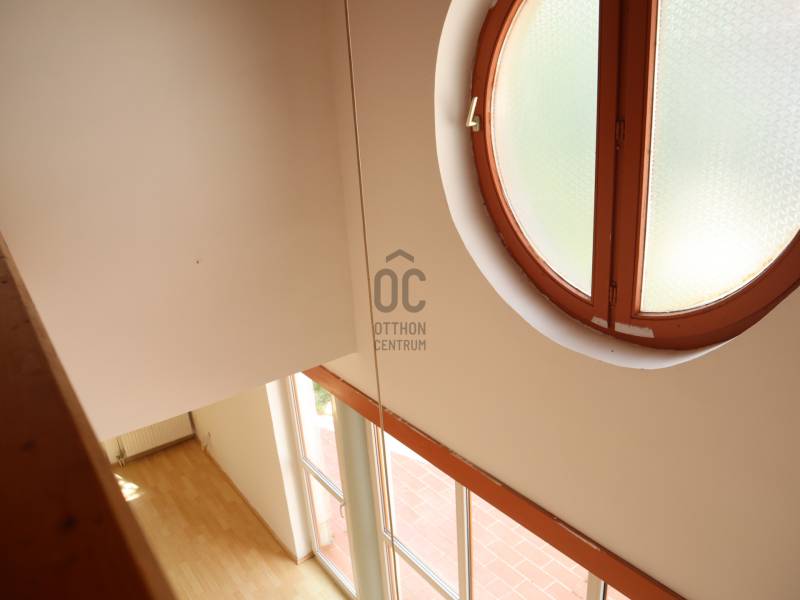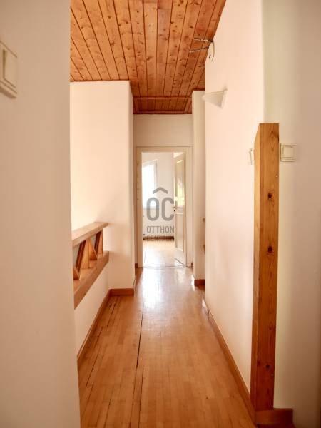 Csendes, zöld, családias környezetben lakóparki lakás eladó!Kőszegen, csendes, családias lakóparkban vált eladóvá ez a kertkapcsolatos, kertre néző, 180 nm-es, egyedi tervezésű, kétszintes sorházi lakás.Az ingatlan Kőszeg kedvelt lakóövezetében, csendes, nyugodt környezetben, a belvároshoz közel helyezkedik el egy 4 lakásból álló sorházban.A lakás földszintjén előszoba, konyha, étkező, nappali, egy hálószoba, egy kisebb fürdőszoba, kazánház, kamra és tárolóhelyiségek kaptak helyet. A nappaliból és az étkezőből jutunk a két teraszra, onnan pedig a kizárólagos használati joggal rendelkező, jól szeparált, 350 nm-es parkosított kertbe.Szép kivitelű, kényelmes lépcső vezet az emeletre, ahol 5 hálószoba, 2 fürdőszoba, egy gardróbszoba van, valamint a folyosón beépített szekrény szolgálja a tárolási lehetőséget. A galéria jellegű folyosóról beláthatjuk a díjnyertes tervezésnek köszönhető izgalmas, napfényes tereket.Az ingatlan hőszigetelt műanyag nyílászárókkal szerelt, a fűtésről és a melegvíz-ellátásról egy puffertartállyal kiegészített kondenzációs gázkazán gondoskodik.A ház előtt 2 gépkocsi számára biztosított a parkolás.A lakás átlagos állapotú, igény szerint felújítandó, remek adottságokkal bíró ritkaság az ingatlanpiacon.Kiváló lehetőség nagycsaládosoknak, összeköltözőknek, de akár önálló családi ház alternatíváját keresőknek is. Számos lehetőséget rejt magában ez a különleges tervezésű ház, mely csak Önre vár, hogy új élettel töltse meg napfényes tereit!További információkért és megtekintési időpont foglalásáért kérem, hívjon bizalommal!Hitelre van szüksége? Az Otthon Centrum az ország egyik legnagyobb és legmegbízhatóbb hitelközvetítőjeként, teljes körű és díjmentes hitel ügyintézéssel, biztosításkötéssel áll rendelkezésére! Kérje személyre szabott ajánlatunkat Kollégáinktól!Válassza ki az Önnek legmegfelelőbbet! |