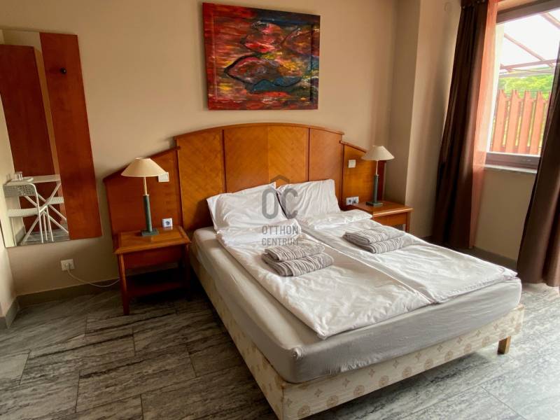 Zamárdi abszolút központjában eladó tehermentes ingatlan: egy 712 m2 alapterületű telken létesített 17 szobás panzió és vendéglő teljes berendezéssel és felszereléssel - összterülete a három szinten 619 m2.Zamárdi Somogy megyében, a Balaton déli partján helyezkedik el, Siófok és Balatonföldvár között, kiváló közlekedéssel és üdülési infrastruktúrával. Zamárdi különösen kedvelt üdülőhely: hosszú szabadstrandja, üdülőövezete és a Balaton-part közelsége révén egész évben vonzza a vendégeket. Emellett a Strand fesztivál, mely Zamárdiban kerül megrendezésre évente 2025-ben 126 ezer látogatót vonzott a településre, megtöltve az összes környékbeli szálláshelyet.Az ingatlan központi elhelyezkedése és a Balatonhoz való közelsége (600 m) miatt kiválóan hasznosítható. Az ingatlannal szemben sportpálya, karnyújtásnyira élelmiszerbolt található, valamint étterem, cukrászda, kávézó, dohánybolt, helyi önkormányzat, és kertmozi is van. Ezek mellett az ingatlan kiválóan megközelíthető, csupán 250 m-re van a Zamárdi vasútállomás.Panzió és vendéglő: - Telekterülete 712 m2- A panzió háromszintes, összterülete 619 m2 - 17 szobás, mindegyikhez tartozik külön fürdőszoba,- Az első emeleti utcafronti szobákhoz külön erkély tartozik - A panzió földszintjén további 5-6 szoba kialakítható - Az épület összközműves, padlófűtés található minden emeleten- A panzióhoz tartoznak szaunák, jakuzzi, kiépített kamera-rendszer - Különálló 58 m2-es teljesen felszerelt, gépesített konyhával rendelkezik az ingatlan, valamint 67 m2-es különálló fedett vendégtérrel, pizzasütő kemencével, és 30 m2-es különálló sörözőHasznosítási lehetőségek: nyári szezonban panzióként, szezonon kívül munkásszállásként, de akár az épület átépíthető többlakásos társasházzá is.Az ingatlan ára nettó ár, további ÁFA terheli, amelyet ÁFA alany vásárló esetén fordított ÁFA szabályai szerint kell bevallani, tehát nem kell kifizetni.Várjuk szíves érdeklődését! |