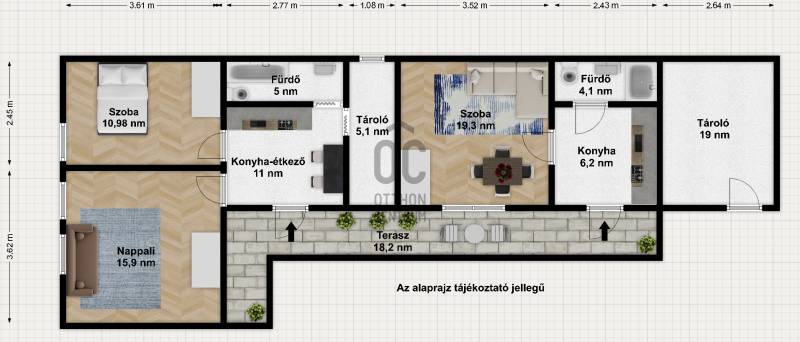 A Pilisborosjenő csendes, mégis élénk részén található ez a remek lehetőség, amely tökéletes választás lehet családoknak és befektetőknek egyaránt. Az ingatlan egy 539 négyzetméteres telken helyezkedik el, amely elegendő teret biztosít a pihenéshez és a szabadidős tevékenységekhez. A házban három tágas szoba található, amelyek mindegyike világos és barátságos légkört áraszt. Két fürdőszoba áll rendelkezésre, így a családtagok kényelmesen elférnek reggelente is. A 18,2 négyzetméteres terasz ideális helyszín a reggeli kávé elfogyasztásához vagy a nyári estéken való pihenéshez, ahonnan gyönyörű kilátás nyílik a környező tájra. Jelenleg az ingatlan 2 lakrészre van kialakítva külön bejárattal - de akár egybe is nyitható - így két generáció számára is alkalmas.Az ingatlan állapota jó, a fűtés gáz cirkó rendszerrel megoldott, így a téli hónapokban is kellemes hőmérsékletet biztosít. Az ingatlan környezete rendkívül biztonságos és csendes, ami különösen fontos lehet családosok számára. A közeli természetvédelmi területek és a Pilis-hegység közelsége számos lehetőséget kínál a szabadidős tevékenységekre, mint például túrázás, kerékpározás vagy akár piknikezés. A közlekedés szempontjából a helyszín előnyös, hiszen a közeli buszmegállókból könnyen elérheti a fővárost, így a mindennapi ingázás sem jelenthet problémát. Az autóval közlekedők számára pedig a közeli főutak gyors és egyszerű hozzáférést biztosítanak Budapest és a környező települések irányába. Pilisborosjenő nem csupán a természet közelsége miatt vonzó, hanem a település barátságos közössége és a helyi szolgáltatások gazdagsága is hozzájárul ahhoz, hogy itt élni valóban élvezetes legyen. Az iskolák, boltok és egyéb létesítmények mind könnyen elérhetőek, így a mindennapi élet kényelmesen és praktikusan szervezhető. Ez az ingatlan nem csupán egy ház, hanem egy lehetőség arra, hogy egy igazán élhető, nyugodt környezetben találja meg új otthonát vagy befektetési célú ingatlanát. Ha bármilyen kérdése van, vagy szeretné megtekinteni az ingatlant, bizalommal forduljon hozzám, szívesen segítek Önnek a lehető legjobb döntés meghozatalában.Ez az ingatlan a \"Felező csomag\" megbízási portfólióhoz tartozik. Részletek az Otthon Centrum weboldalán. |