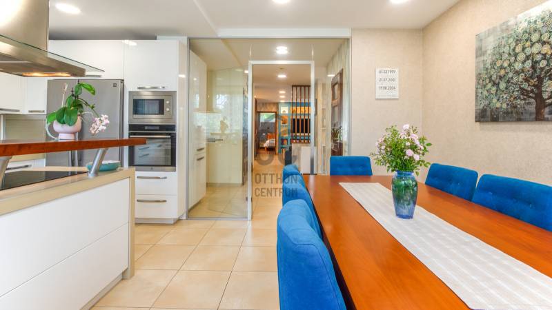 Fedezze fel ezt a kivételes lehetőséget, amely tökéletes választás lehet azok számára, akik egy tágas, kényelmes otthont keresnek Budapest 16. kerületében, Rákosszentmihály csendes és barátságos környezetében. 3 szintes ingatlan :•Pince szint (106 nm): 45 nm-es dupla állásos garázs biciklitárolóval, beépített gardrób, és egy 37 nm-es hobbiszoba, gépészeti helyiség, WC és zuhanyzó.•Földszint (90 nm): tágas 30 nm-es nappali, 20 nm-es konyha-étkező a hozzátartozó kamrával, vendég WC, 17 nm-es hálószoba fürdőszobával és gardróbbal.•Emeleti szint (80 nm): három hálószoba, amelyből kettő össze lett nyitva, de könnyedén visszaalakítható (12, 11 és 24 nm), valamint egy 9 nm-es fürdőszoba, 2 kisebb erkély és galéria.- alapterülete 276 nm- telek mérete 545 nm - földszint 90nm, nappali, étkezős-konyha kamrával, hálószoba fürdő- és gardróbbal, vendég WC- emelet 80 nm, 3 szoba (kettő összenyitva 12 és 11) fürdőszoba, galéria és 2 db erkély- pince 106 nm, mely dupla beálls garászból, tároló, gardrób, hobbiszoba, gépészeti helyiség, WC és zuhanyzóból áll- terasz 19 nm- Enegetikai besorolása: A++- Napelem (5 kw)- Dupla garázs + parkolási lehetőség külön bejárati kapuval az udvarbanÍgy bőven elegendő helyet biztosít nagy családosok számára is. Az ingatlan kiváló állapotban miatt, ezért azonnal költözhető, így Önnek nem kell aggódnia a felújítások miatt. A két fürdőszoba kényelmet biztosít, különösen a reggeli rohanás idején, amikor fontos, hogy mindenki időben elindulhasson. A 19 nm-es terasz, valamint a 2 nm-es erkély tökéletes helyszínt kínál a pihenésre, ahol élvezheti a szabad levegőt és a gyönyörű panorámát, amely a környéket övezi. Rákosszentmihály egy rendkívül biztonságos és csendes városrész, ahol a szomszédok barátságosak, és a közvetlen környezet kedvező az aktív, családias életvitelhez. A környék kiváló közlekedési lehetőségekkel rendelkezik, így könnyen elérheti Budapest belvárosát autóval vagy tömegközlekedéssel.Az ingatlan nemcsak otthonául szolgálhat, hanem értékálló befektetésként is megállja a helyét, hiszen a környék folyamatosan fejlődik és bővül. Ha Ön is szeretne egy olyan ingatlanra szert tenni, amely minden szempontból megfelel az elvárásainak, ne habozzon kapcsolatba lépni velünk. Szívesen válaszolunk kérdéseire, és segítünk Önnek abban, hogy megtalálja álmai otthonát vagy befektetési lehetőségét a hét bármely napján. A bizalom és a szakértelem a mi mottónk, és mindent megteszünk annak érdekében, hogy Ön elégedett legyen választásával.Ez az ingatlan a \"Felező csomag\" megbízási portfólióhoz tartozik. Részletek az Otthon Centrum weboldalán. |