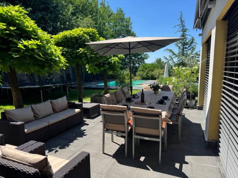 Kiadó luxus családi ház Szadán – panorámás kilátással és prémium felszereltséggel!Az ingatlanpiac egyik legkülönlegesebb lehetősége vár Önre Szada Margita legexkluzívabb részén! Ez a 360 m²-es, modern technológiákkal felszerelt családi villa lenyűgöző panorámával, kültéri medencével és elegáns belső kialakítással hosszútávra kiadó igényes bérlők részére.Főbb jellemzők:Építés éve: 2010 – korszerű, energiatakarékos megoldásokkalLakótér: 360 m² | Telek: 800 m²Szobák: 4 hálószoba, 2 nappali, dolgozószobaFürdőszobák: 3 elegáns, prémium burkolatokkalKonyha, étkező: amerikai stílusú, konyhaszigettel és hatalmas étkezővelTerasz: kertkapcsolatos, ideális pihenéshez és 36 m2-es panoráma teraszGarázs: 2 állásos elektromos autó töltéssel + térkövezett autóbeállókKert: automata öntözőrendszer, privát belső udvar, pingpong asztal, trambulin, focipálya, gyermek homokozó és mászóvárTechnológia és extrák:15 kW-os napelemrendszer – alacsony rezsiköltségKlíma minden szinten + hőszivattyús fűtés padlófűtésCserépkályha – romantikus hangulat a téli estékenOkos otthon rendszerMotoros redőnyök, integrált szúnyoghálóLED hangulatvilágításRiasztórendszer és biztonsági ajtóElektromos autó töltési lehetőségElhelyezkedés:Szada Margita – csendes, biztonságos, hegyvidéki környezetKiváló infrastruktúra: üzletek, iskolák, egészségügyi intézmények könnyen elérhetőekBudapest belvárosa gyorsan elérhető autóval vagy tömegközlekedésselBérleti feltételek:Bérleti díj: 5400 USD/hó + rezsiKaució: 3 havi bérleti díjSzerződés: közjegyzői okiratba foglaltKöltözés: rugalmasan egyeztethetőBútorozva elérhetőAz ingatlan elsősorban kisállat nélküli bérlők számára kiadó.Ez az ingatlan nem csupán egy ház, hanem egy otthon, ahol a család minden tagja megtalálhatja a számításait. A modern életstílus, a természet közelsége és a prémium kivitelezés együtt garantálják a magas életminőséget.További információért és megtekintésért forduljon hozzám bizalommal! |