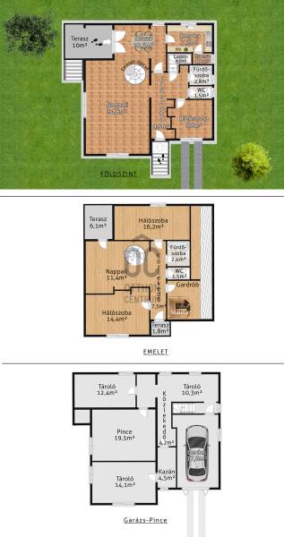Megvételre kínálok a XVIII. ker. Miklóstelepi részen egy 1990-ben épült, 659 nm-es telken elhelyezkedő, összesen 242 nm-es, háromszintes, téglaépítésű, jó állapotú családi házat. Átmenő forgalomtól mentes saroktelken helyezkedik el körbejárható, kíváncsi szemektől védett kerttel.Az ingatlan 5 szobás, 2 fürdőszoba , külön wc, három erkély, szauna szoba, riasztóval védett.Kialakítása és elhelyezkedése miatt alkalmas irodának ,bemutatóteremnek , a lakás pincerésze alkalmas raktárnak ami 80 nm -esAz ingatlan fűtését cirkó- és padlófűtés biztosítja, amit még kiegészít CASCADE split klíma is.A pince szinten garázs (elektromos kapuval), valamint két további helyiség található. A kertben akár két autó fedett beállása megoldott.Az épület 35 cm-es porotherm téglából épült, betonfödémes, cseréptetős és napelemmel felszerelt.Tömegközlekedés: 93, 93A, 198, 217, 217E, 200E buszok a közelben elérhetők.Várom megtisztelő hívását, akár hétvégén is |