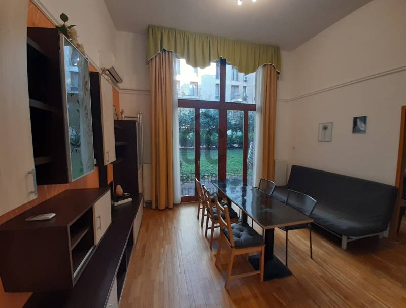 VII. kerületben, Kazinczy utcában, Reneszánsz ház II-ben,földszinti, teraszos lakás eladó.A ház 2007-ben épült, portaszolgálatos.A lakás földszinti, tulajdoni lap szerint 45 m2, 2 szobás, 8 m2 terasszal.Belmagassága 4,1 m.A nappali - konyha egy légtérben található, nagy üvegfelületekkel, 2 ajtóval kapcsolódik a 8 m2 - es teraszhoz.Szobája szintén terasz kapcsolatos.A fürdő és WC egy helyiségben van.A lakás klimatizált, fűtése házközponti.A rövidtávú szálláshely szolgáltatás engedélyezett a házban.Ajánlom befektetésnek. |