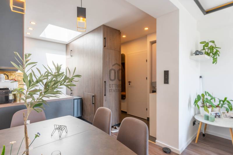 Képzeld el, hogy egy exkluzív, hegyvidéki lakásban élsz, ahol a modern minimalista kialakítás és a prémium kivitelezés minden részletében megjelenik. A Budapest 12. kerületében található Orbánhegyen, a Fodor utcában elhelyezkedő 50 nm-es, kiváló állapotú lakás tökéletes választás fiatal felnőtteknek, akik egy csendes, biztonságos környéken szeretnének otthonra lelni. A lakásban két tágas szoba vár rád, ahol a beépített bútorok és szekrények maximális helykihasználást biztosítanak, így nemcsak stílusos, hanem praktikus is. A lakás világos, köszönhetően a nagy ablakoknak, amelyek gyönyörű panorámát nyújtanak a környező hegyekre. Az fűtésről elektromos, Stibel Eltron és a hűtésről pedig ,klíma berendezés gondoskodik arról, hogy az otthonod minden évszakban kellemes hőmérsékletű legyen. A LED hangulatvilágítás pedig lehetővé teszi, hogy a hangulatot mindig a saját ízlésed szerint alakítsd. Az ingatlan elhelyezkedése kiváló, hiszen a környék ellátottsága minden igényt kielégít. A közeli boltok, éttermek és kávézók csak néhány percnyi sétára találhatóak, így a mindennapi élet kényelmes és gyors. A tömegközlekedési lehetőségek is kedvezőek, hiszen a közelben található buszmegállók gyorsan eljuttatnak a város központjába, de autóval is könnyen megközelíthető a környék, hiszen a főbb közlekedési útvonalak is a közelben helyezkednek el. A csendes környezet és a felkapott környék ideális választás lehet, ha szeretnél távol lenni a város zajától, mégis közel maradni a főbb szolgáltatásokhoz. A biztonsági ajtó és a környék nyugodt légköre további garanciát nyújt arra, hogy otthonod valóban a pihenés szigete legyen. Ha egy modern, világos lakásra vágysz, ami minden szempontból megfelel a mai kor elvárásainak, akkor ez a hegyvidéki ingatlan tökéletes választás számodra. Bármilyen kérdésed lenne az ingatlannal vagy a környékkel kapcsolatban, bizalommal kereshetsz! Érdemes minél előbb megtekinteni ezt a különleges lehetőséget, hiszen az ilyen ajánlatok gyorsan elkelnek. Ne hagyd ki ezt a remek alkalmat, hogy egy igazán különleges otthonra lelj! |