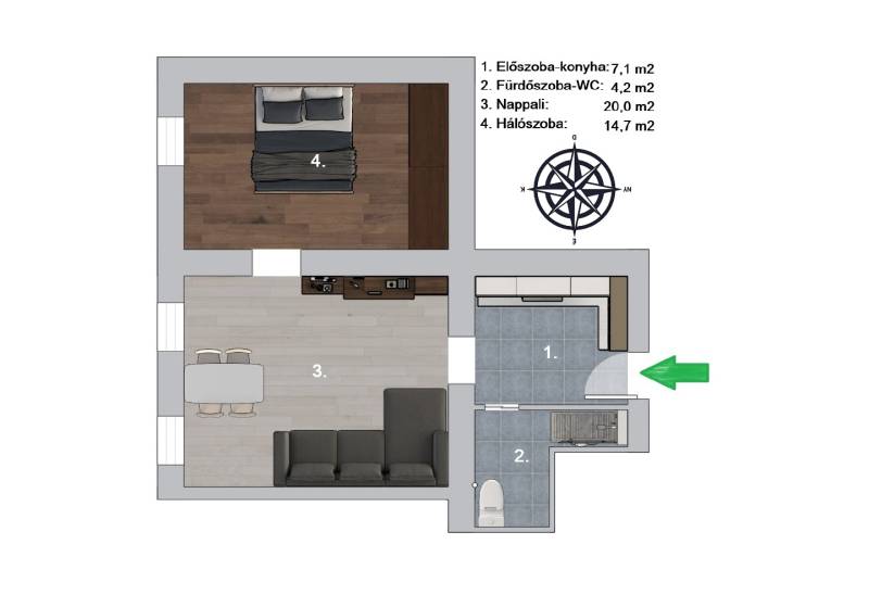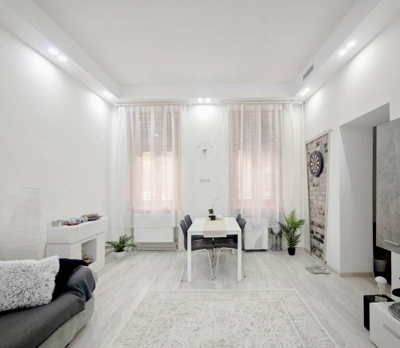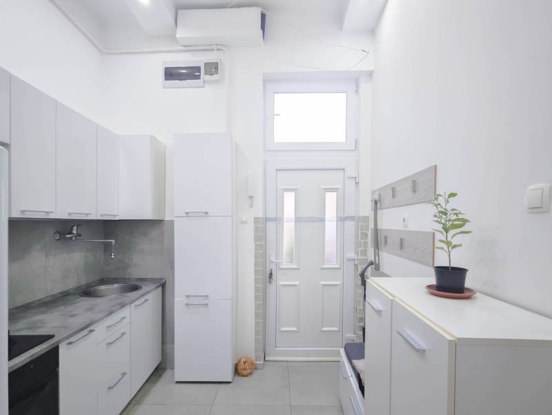 Új tulajdonosát keresi Újpesten egy csendes, felújított, földszinti lakás jó közlekedéssel és infrastruktúrával. Ha szép állapotú, alacsony fenntartási költségű, élhető terekkel rendelkező ingatlant keres, akkor ezt ne hagyja ki!A KÖRNYÉKRŐL:- Budapest IV. kerülete, Újpest, Erkel Gyula utca.- Funkcionálisan jól ellátott környék, fejlődő kerületi központ közelében.- Gyakorlatilag Újpest-Központ vonzáskörzete, gyalog, autóval és tömegközlekedéssel is gyorsan elérhető.- Több buszjárat megállója megtalálható sétatávolságban, a legközelebbi buszmegálló 300 méter.- Újpest-Központ és az M3 metró 7 perc busszal, 13 perc gyalogosan.- 10 perces körön belül elérhető minden, ami a napi élethez szükséges.A HÁZRÓL:- 1960-ban épült, 16 lakásos, földszintes, téglaépület.- Kívül-belül átlagos állapotú.- Rendezett közös belső udvarral rendelkezik.A LAKÁSRÓL:- Földszinti, 48 m2-es, 2 szobás, felújított ingatlan.- Kifejezetten csendes és hangulatos, fiatalos otthon.- Rendkívül praktikus elrendezésű, modern kialakítású, élhető terekkel rendelkezik.- Jelenlegi felosztása: előszoba-konyha, nappali + 1 hálószoba, zuhanyzós fürdőszoba-wc.- A hálószoba a nappaliból nyílik, a szobák az utcára néznek.- A nyílászárók részben műanyagok, részben modern fa szerkezetű ablakok.- A lakásban lévő burkolatok modern színvilágúak és jó minőségűek.- A lakáshoz tartozik egy 6 m2-es saját pincerekesz.AZ INGATLAN MEGTEKINTHETŐ:- személyesen,- online személyes bejelentkezéssel.FINANSZÍROZÁSI KÉRDÉSEKBEN ONLINE ÜGYINTÉZÉSSEL IS SEGÍTÜNK:- Bank-független hitelcenterünk díjmentesen versenyezteti minden bank és hitelintézet ajánlatát.- Önnek nincs más dolga, mint beszélgetni munkatársunkkal, majd a megversenyeztetett ajánlatokból kiválasztani a hosszútávon is a legmegfelelőbb konstrukciót.- Szakértőink 20 éves szakmai tapasztalattal és egyedi igényekre szabott, fogyasztóbarát lakáshitelekkel, babaváró hitellel, teljes körű CSOK PLUSZ és OTTHON START program ügyintézéssel várják Önt.- Előre egyeztetve akár a normál munkaidő után is.Kifejezetten ajánlom pároknak, vagy egyedülállók részére. Könnyű megközelíthetősége és a környék ellátottsága miatt bármely korosztály számára kényelmes otthon lehet.További információért és megtekintési időpontért hívjon bizalommal. |