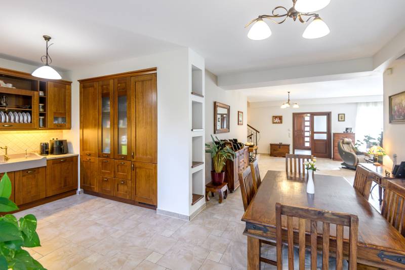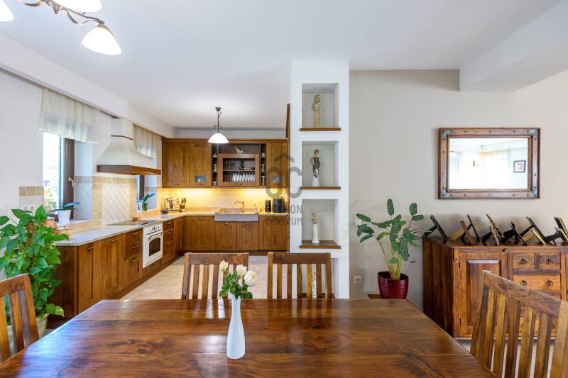 Sopron egyik legkedveltebb részén, az Ágfalvi úti lakóparkban kerül eladásra egy 2010-ben épült, 1238 m²-es telken álló, különleges családi ház, amely az igényesség és a gondosan megtervezett élettér tökéletes példája.A HÁZ JELLEMZŐI- nettó lakóterület: 260 m²- építés éve: 2010- téglaépítésű, minőségi anyagokból- alumínium borítású fa ablakok, tömör kőrisfa beltéri ajtók- kovácsoltvas korlát az emeletre vezető lépcsőn – igazi éke a háznak- fűtés: Vaillant turbó gázkazán, padló- és falfűtés helyiségenként szabályozhatóan- melegvíz ellátás: gázkazán + napkollektor (250 l puffertartály)- nagy teljesítményű klíma az egész ház hűtéséreTÁGAS VILÁGOS BELSŐ TEREKA földszint központja a nappali–étkező–konyha egysége, ahol a természetes fény, a fa meleg tónusai és a finom részletek együttesen teremtenek meghitt, elegáns hangulatot.A tömör fából készült, gránit munkalapos konyhabútor nemcsak stílusos, de a minőség garanciája is.A nappali közvetlen teraszkapcsolattal rendelkezik, így a kert szinte a lakótér folytatása.KÉNYELMES, ÁTGONDOLT EMELETI ELRENDEZÉSAz emeleten HÁROM HÁLÓSZOBA kapott helyet:-a szülői lakrész saját fürdőszobával és gardróbbal,- másik két szoba közös fürdőt használ,- a tágas közlekedő kellemes, világos teret biztosít.ALSÓ SZINT – kényelem és praktikusságA földszinten helyet kapott:- egy vendég- vagy dolgozószoba,- egy tágas háztartási helyiség szaunával, tusolóval és WC-vel,- valamint egy duplagarázs elektromos garázskapukkal.Minden itt van, ami a mindennapi kényelmet szolgálja – logikus elrendezésben, minőségi kivitelezésben.A KERT - MAGA A NYUGALOMAz 1238 m²-es, parkosított kert gondosan megkomponált:- robotfűnyíró,- Wellis jakuzzi - barabás téglából épített grillező és kerti konyha,- árnyas pihenősarok, ahol a zöld növények között valódi kikapcsolódás várja.- kerti faházEz a kert nem csupán szép — élettér, ahol minden nap egy kicsit nyaralás.Egy ház, ahol a részletek számítanak.Ez az otthon nem hivalkodó, hanem elegánsan kifinomult.Minden anyag, minden vonal és minden szín azt sugallja:itt a nyugalom, a minőség és a természet közelsége egyensúlyban van.ELHELYEZKEDÉSKönnyen megközelíthető kertvárosi környezetA város infrastruktúrája, iskolák, bevásárlási lehetőségek és zöld területek egyaránt elérhetők.KÖLTÖZÉSA költözés gyorsan megoldható.Ha egy olyan otthont keres, amely egyszerre sugároz eleganciát, kényelmet és természetes harmóniát,akkor ez a ház Sopronban, az Ágfalvi úti lakóparkban Önre vár.Hitelre van szüksége?Az Otthon Centrum az ország egyik legnagyobb és legmegbízhatóbb hitelközvetítőjeként, teljes körű és díjmentes hitelügyintézéssel, biztosításkötéssel áll rendelkezésére!Kérje személyre szabott ajánlatunkat Kollégáinktól! |