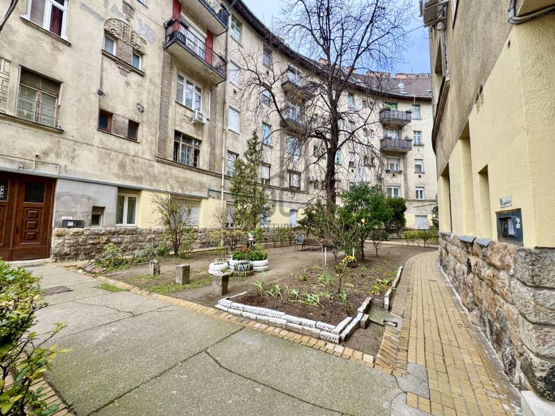 Harmat utca 10. – 64 m²-es földszinti otthon , belső udvarral, nagy terekkel, természetes fa hangulattalVan az a fajta otthon, ahol nem kell magyarázni a hangulatot. Belépsz, és érzed, hogy ez egy régi, stabil pesti ház: vastag falak, nagy belmagasság, csendes belső udvar, ahol a pad mellett lehullanak a levelek, és még a szél is lassabban jár.A földszinti, 64 m²-es lakás pontosan ezt hozza.Tágas, jól szervezett terek, nyugalom, régiségek szeretete és rengeteg természetes fa – olyan melegség, ami ma már ritkaság.Az alaprajz különlegesen jó:egy közel 22 m²-es nappali, mellette egy intim, udvarra néző hálószoba, tágas 12 m²-es étkezős konyha kamrával, egy szépen rendezett közlekedőtér és egy kényelmes méretű fürdő várja azt, aki szereti a funkcionális, élhető otthonokat.A konyha és az étkező része igazi békebeli tér. A körbeépített sarokpad, a természetes fa borítások, a falon sorakozó képek és a látszó gerenda együtt adják azt a meghitt családi hangulatot, ahol jó leülni a reggeli kávéra vagy egy hosszabb esti beszélgetésre. A kamra külön ajándék – manapság már keveseknek jut ilyen.A nappali hatalmas, könnyen variálható, többféle funkciót is elbír egyszerre: dolgozósarok, tévés rész, vendégterület – szépen elfér benne minden.A nagy fa szekrények, polcok és a falburkolatok mind kézzel készült, egyedi darabok; ez tartja egyben az otthon meleg hangulatát.A hálószoba az udvar felé néz – csendes, zavartalan, természetes fénnyel. Pont az a helyiség, ahol könnyű kipihenni magad.A fa nyílászárók eredetiek, szépen megőrzött állapotban. Ezek adják az egész lakás karakterét: meleg tónus, természetesség, valódi anyagok.A fűtést és hűtést több klíma segíti, ami földszinten külön előny.A lakás állapota közepes – tiszta, rendezett, élhető, költözhető.Nem kér azonnali teljes felújítást, ugyanakkor bármilyen ízlésre könnyen ráhangolható.A társasház nagy, több lépcsőházas, zárt belső udvarral rendelkezik. A kapu biztonsági rendszerrel van ellátva, az utcáról nem lehet besétálni, így a környezet valóban nyugodt és védett.A Harmat utca elején járunk, ahol a közlekedés különösen jó: innen a város szinte bármely pontja gyorsan elérhető, akár autóval, akár tömegközlekedéssel.A ház belső udvara igazi kis kert: padok, növények, csend, nagy fák – olyan közeg, ahol jó megállni két lélegzetvétel között. Ez az a budapesti miliő, ami lassan eltűnik, és egyre nagyobb érték.- [ ] |