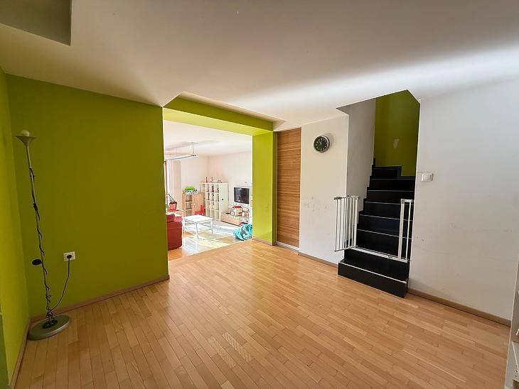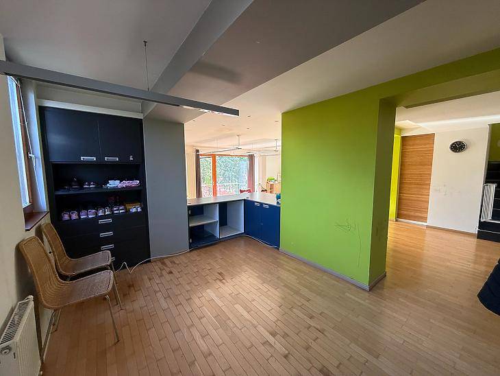 Kizárólag Irodánk kínálatában!Eladásra kínálunk egy csendes, jó állapotú, nettó 159 nm-es + 15 nm-es teraszos, belső kétszintes, világos, panorámás lakást Németvölgy frekventált részén, a Fürj utcában.A szigetelt ház 2 lakásos, 3 szintes, amelyből az eladásra kínált lakás a felső két szinten helyezkedik el. A lakás 6 szobával rendelkezik, amelyből az első emeleten található egy nappali + 2 szoba, a többi szoba a második emeleten helyezkedik el.Az első emeleten található egy 4 nm-es és egy 11 nm-es terasz (utóbbi bővíthető igény szerint), valamint a 2. emeleten két franciaerkély is.Belmagassága 266 cm.A lakás külön bejáraton át megközelíthető a kertből, illetve a garázsból is.Tartozik hozzá egy kétbeállásos garázs, mely 16 nm, valamint egy udvari beálló. Ezeket kötelező megvásárolni, értékük összesen 20M Ft.A ház kertje közös használatú.Elhelyezkedése kiváló: a közelben bevásárlási lehetőségek, iskolák, óvodák, parkok és tömegközlekedési megállók találhatók. A környék ideális mindazoknak, akik a város közelségét, de a zöld, csendes környezetet részesítik előnyben.Kérdés esetén keressen minket bizalommal!Irodánk ingyenes hiteltanácsadással áll ügyfeleink rendelkezésére.Vevőink számára a közvetítés díjmentes.A hirdetésben szereplő adatok tájékoztató jellegűek. |