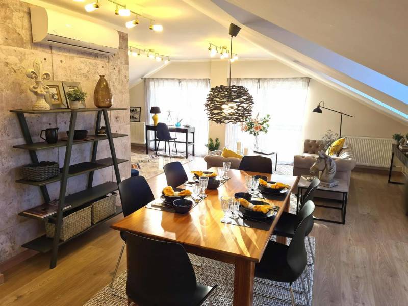 Ajkán, csendes és nyugodt környezetben eladó egy tágas, 103 nm-es tetőtéri lakás – tudatos, fiatal vásárlóknak kiváló választás.Az ingatlan egyedi megoldásokkal és minőségi kivitelezéssel készült, a mindennapi használhatóságot és a praktikus élettereket helyezve fókuszba.2020-ban egy időben, a lépcsőházban megtörtént a víz, villany, fűtés, csatornahálózat cseréje.Főbb jellemzők:- Alapterület: nettó 103 nm, bruttó 147 nm, tetőtéri kialakítás- Elrendezés: 3 hálószoba, 2 fürdőszoba, konyha-nappali, gardrób- Fűtés: távhő egyedi mérés nélkül, automata légtelenítőkkel- Hűtés: 4 db MIDEA klíma, melyek távolról is vezérelhetők- Két helyrajzi számon található az ingatlan (68 nm és 79 nm)- Külön helyrajzi számon, saját, 12 nm-es tároló tartozik a lakáshoz- Finanszírozás: CSOK-ra és egyéb egyedi kedvezményekre alkalmas- Tulajdoni viszonyok: rendezettek, teljesen tehermentesA lakás kiváló elosztású, világos: a három hálószoba és a két fürdőszoba a kényelmes együttélést támogatja, a konyha-nappali funkcionális központot ad a mindennapokhoz.A gardrób rendezett tárolási lehetőséget biztosít, a klíma a nyári komfortot növeli, a távhő pedig megbízható fűtést nyújt.A két külön helyrajzi számú kialakítás különválasztási lehetőséget teremt, ami a használat és a tervezés szempontjából rugalmas megoldás.Fiataloknak, első otthont keresőknek praktikus és méretében is versenyképes alternatíva, ahol a kész műszaki megoldások azonnal élhető tereket kínálnak.Kizárólag Otthon Centrum kínálatában érhető el.Hívjon mielőbb, és szakértői támogatással végig kísérem a biztonságos vásárlási folyamatot!Amennyiben felkeltette érdeklődésedet az ingatlan, kérlek, keress a megadott elérhetőségeken!Irodánk teljes körű HITEL-, BABAVÁRÓ és CSOK ügyintézéssel, biztosítással, energetikai tanúsítvány készítésével, valamint megbízható ügyvédi háttérrel segíti Ügyfeleit.#OtthonCentrum #lakás #ház #eladás #vétel #Veszprém #OC #Ingatlanadásvétel #eladva #Veszprémvármegye #Ingatlanközvetítő #Otthonszakértő #Albérlet #Ingatlaniroda #ingatlanos #szép #realestate #újlakás #újotthon #állás #álláskeresés #panel #panellakas #társasház #munka #instagood #családiház #szépházak #siker #homestaging #eladólakás #otthon #ingatlan #eladóingatlan #munkalehetőség #karrier |