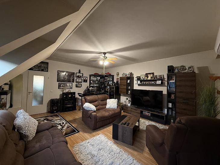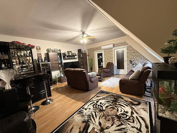 Újpesten az Árpád üzletház közelében, kiváló közlekedés mellett, szigetelt társasházban, eladásra kínálunk egy jó állapotú, nettó 88 nm-es, 1+3 félszobás, tetőtéri téglalakást. Az ingatlan 1/1-es tulajdonban van, per-teher és igénymentes. Átadási ideje: 90-120 nap. Közös költsége: 26.790.- Ft/hó (beállóhellyel együtt).A lakásban a 2009-es éveknek megfelelő korszerűségű víz és villanyhálózat került kialakításra. Több ponton záródó, biztonsági bejárati ajtó, fa típusú beltéri ajtók, valamint redőnnyel felszerelt műanyag keretes, thermo üveges és sötétítővel felszerelt, fa típusú velux tetőtéri nyílászárók kerültek beépítésre. A szobákban laminált padlót helyeztek le, a többi helyiséget járólappal burkolták. Minden helyiségben lapradiátor található. A fűtést és a melegvíz ellátást kombi cirkókazán biztosítja, a fogyasztás elszámolás alapján is történhet. A nagyobb komfortérzet kialakítása érdekében a nappaliba egy hűtő-fűtő inverteres légkondicionáló berendezés is felszerelésre került. Az ingatlanhoz egy saját, kb 3 nm-es, zárt tároló tartozik. Igény esetén a teremgarázsban külön helyrajzi számmal rendelkező, privát, zárható, kb. 18 nm-es beállóhely vásárolható az ingatlanhoz, melynek irányára 10.000.000.- Ft.Pár perc sétával Lidl, Dm, Jysk, Pepco, Rossmann, Spar, Obi, Posta, gyógyszertár, éttermek, illetve egyéb szolgáltatók és szolgáltatások mind megtalálhatók. A közelben megtalálható a 120-as, 196-os, 104-es, 204-es, 25-ös, 170-es busz megállója. Újpest-központ és az M3-as metróállomás gyalogosan kb. 6 perc alatt megközelíthető. A belváros tömegközlekedéssel és autóval egyaránt rövid időn belül elérhető. A hirdetésben szereplő adatok tájékoztató jellegűek! Egyes ingatlanjaink esetében csere és ingatlanbeszámítás is lehetséges. Továbbá ügyfeleink részére keresünk eladó ingatlant, tulajdonrészt, vagy haszonélvezeti joggal terhelt ingatlant Budapesten és az agglomerációban. A részletekről kérjük érdeklődjön telefonon.Bankfüggetlen hiteltanácsadóink, az ország összes pénzintézete közül gyorsan és gördülékenyen találja meg az Önnek legmegfelelőbb konstrukciót, egyedi, személyre szabott kedvezményekkel.A KÖZVETÍTÉS VEVŐINK RÉSZÉRE DÍJMENTES! |