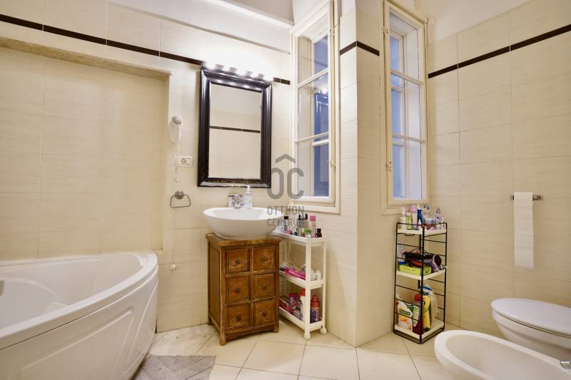 Eladásra kínálunk Budapest belvárosában, a Váci utcában, egy 110 m²-es, jó állapotú, különleges adottságokkal rendelkező társasházi lakást. Az ingatlan a 3. emeleten található, lifttel nem rendelkező, de szépen karbantartott, felújított épületben.A lakás két, egymástól jól elkülönülő lakrészre lett funkcionálisan kialakítva, amelyek így akár együtt, akár külön is kényelmesen használhatók. Ennek köszönhetően az ingatlan kiváló lehetőség befektetők számára, illetve több generáció együttélésére is.Főbb paraméterek:-110 m²-2 külön lakrész-2 konyha-2 nappali-2 fürdőszoba-2 különálló hálószoba-Jó állapot-Fűtés: gázcirkóA belmagasság 310 cm, a fűtés pedig gázcirkó, ami gazdaságos üzemeltetést biztosít. Jelenleg három megbízható egyetemista bérlő lakja, akik igény esetén szívesen maradnának, de a lakás legkésőbb 3 hónapon belül birtokba adható.Az ingatlan tulajdonosa cég, így a vételhez számla biztosított, ÁFA-mentesen, a fizetés pedig euróban lehetséges.A környék előnyei-A Váci utca a belváros egyik legelőkelőbb és legnépszerűbb része, ahol a történelmi hangulat, a kulturális központok és a modern szolgáltatások tökéletesen találkoznak.-Kiváló közlekedés: metró, villamos, busz perceken belül.-Minden fontos szolgáltatás gyalogosan elérhető.-Rendezett, biztonságos és kulturált környék.-A Duna-part mindössze 200 méterre — tökéletes sétákhoz, kikapcsolódáshoz.-Élhető, mégis pezsgő belvárosi környezet.-Tehermentes,hitelezhetőA lokáció kiemelten alkalmas befektetési célra, mivel a környéken mindig magas a minőségi bérlők iránti kereslet.Birtokbaadás: max. 3 hónapAmennyiben felkeltette érdeklődését ez a sokoldalúan hasznosítható, kivételes lokációjú belvárosi ingatlan, kérem, keressen bizalommal további információ vagy megtekintés egyeztetéséhez. |