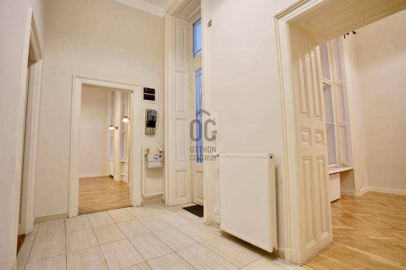 Bérbeadásra kínálunk egy 155 m²-es, tágas, jó állapotú, különleges hangulatú polgári lakást Budapest belvárosának egyik legelőkelőbb és legfrekventáltabb részén, közvetlenül az Operával szemben. A lakás egy patinás, szépen karbantartott téglaépület első emeletén található, a Művész kávéház épületében.Az ingatlan duplex elrendezésű azaz két lakrészes, nagyvonalú terekkel, 5 szobával, 2 fürdőszobával, külön WC-vel, valamint gázcirkó fűtéssel. A 315 cm-es belmagasság és a nagyméretű ablakok elegáns, világos és exkluzív életteret biztosítanak. A fogyasztások jelenleg közös mérésen futnak.Főbb adatok röviden-Méret: 155 m²-Elrendezés: duplex, 5 szoba-Vizesblokkok: 2 fürdőszoba + 1 külön WC-Bérleti díj: 1800 EUR / hó (ÁFA-mentes számlával)-Kaució: 2 hónap-Birtokbaadás: azonnal-Min. bérleti idő: 1 év-Fűtés: gáz cirkó-Klíma-Belmagasság: 315 cm-Lift: van de üzemen kívül jelenleg ( 1 emelet)-Dohányzás: nem megengedett-Kisállat: nem hozható-Fizetés: kizárólag EURAz ingatlan jól karbantartott, praktikus elrendezésű, különösen alkalmas:-hosszú távú lakhatásra,-reprezentatív otthon-irodának,-üzleti célra (pl. kreatív iroda, tanácsadó tér).A mérőórák jelenleg közösek.A tulajdonos cég, így a bérleti díjról minden hónapban ÁFA-mentes számla kerül kiállításra.A környék kiemelkedően vonzóA lakás közvetlenül az Opera épületével szemben helyezkedik el – Budapest egyik legszebb, kulturálisan legsokoldalúbb és turisztikailag legismertebb pontján. A lokáció megkerülhetetlen előnyei:A belváros közepe – minden percek alatt elérhető: kávézók, éttermek, üzletek, színházak, galériák.Kiváló közlekedés: metró, villamos, buszjáratok pár lépésre.Elegáns, rendezett környezet, kulturált lakóközösséggel.A környék nappal pezsgő, este is biztonságos, jól megvilágított, magas presztízsű.A városi panoráma és az Opera látványa különleges pluszt ad a lakás mindennapi hangulatához.A környék adottságai miatt az ingatlan üzleti célokra (iroda, rendelő, stúdió) is kiváló választás, ugyanakkor élhető, otthonos, kényelmes lakóteret is biztosít.Amennyiben a belváros egyik legkülönlegesebb pontján található, reprezentatív és sokoldalúan használható lakás felkeltette érdeklődését, készséggel állok rendelkezésére további információval vagy megtekintés egyeztetésével kapcsolatban. |