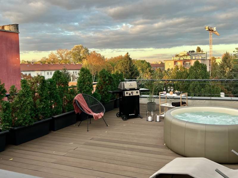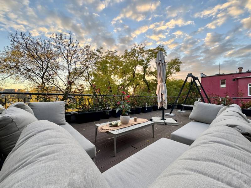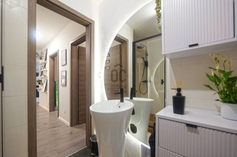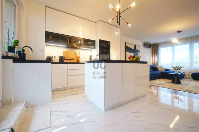 A környék:Csendes zöldövezet, jó ide hazaérni. Maximum 3 perces sétatávolságon belül megtalálunk számos parkot, újonnan elkészült hatalmas játszóteret, villamos és buszmegállót, bevásárlási lehetőséget, gyógyszertárat, cukrászdát.A társasház:2018-ban átadott épület különleges építészeti megoldásokkal. Impozáns lépcsőháza egyedi a kategóriájában, a lakók közvetlenek, a belső kertben kialakított játszótér teszi teljesen családbaráttá. A lakás:Letisztultság és harmónia. Tágasság: a több mint 35nm-es nappali-konyha-étkező a család és barátok kedvenc élettere lesz! A dupla tájolásnak köszönhetően egész nap fényárban úszik. A hálószoba a nappali eleganciáját tükrözi: egyszerre extravagáns és letisztult, dinamikát és nyugalmat áraszt egyidőben.A gyerekszoba a nagyobb háló, itt biztosan jól fogják érezni magukat az új lakói!A terasz:110négyzetméter. Ősfás környezet. Tavasztól-őszig garantáltan a család és a barátok központi tere lesz. Hatalmas ülőgarnitúrával, hintával és jacuzzival is szellős marad. |
