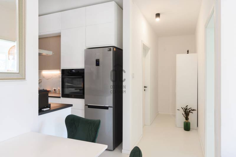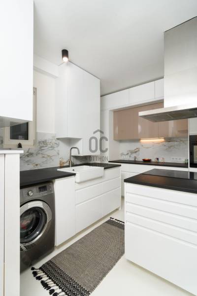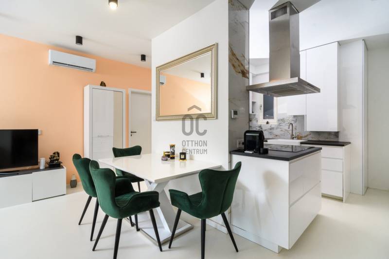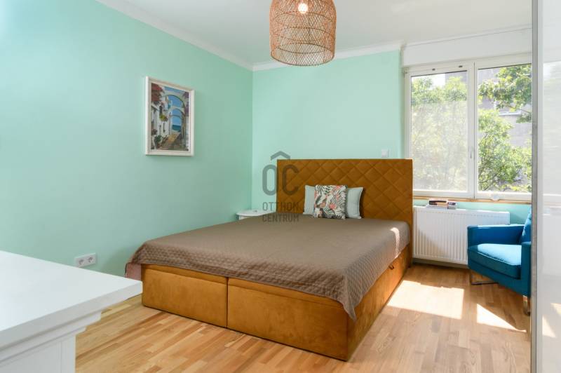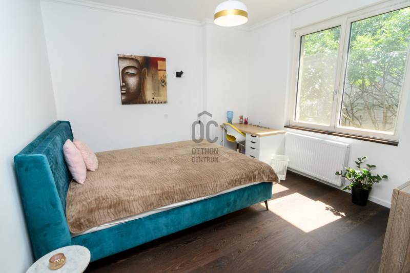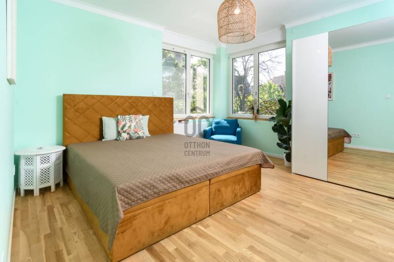 Felújított, világos lakás Bauhaus jellegű villaépületben, két erkéllyel – a 2. kerület Országút szívében.Eladásra kínálunk egy teljes körűen felújított, 90 m²-es, két erkélyes otthont egy Bauhaus stílusú, Boghen György mérnök által tervezett villaépületben, Budapest egyik legkedveltebb részén, az Országút városrészben.A lakás a legfelső emeleten található, így teljes nyugalmat, intimitást és kivételes benapozottságot kínál Déli fekvésével. A ház szinteltolásos kialakításának köszönhetően nincs közvetlen szomszéd, ami tovább fokozza a privát hangulatot.A közös kertben gyermekek számára a kikapcsolódás garantált: Játszórész, homokozó, trambulinFőbb jellemzők:--Alapterület: 90 m²--Elrendezés: amerikai konyhás nappali + 3 hálószoba--Fürdő: zuhanyzós fürdőszoba és külön mosdó--Erkély: két kényelmes, összesen 6 m²-es erkély--Konyha: egyedi tervezésű bútor, beépített Electrolux gépekkel--Felújítás: 2022-ben, minőségi anyagokkal és modern technológiákkal--Nyílászárók: háromrétegű fa ablakok, elektromos redőnyökkel--Fűtés: Bosch kombi cirkó, padlófűtés a nappaliban, konyhában és fürdőben--Klíma: a nappaliban és a szülői hálóban kiépítve, további szobákban előkészítve--Villamos hálózat: 3 fázis bekötve (3x20A)A hálószobákban magas minőségű tölgyfa parketta, a konyhában és a fürdőszobában prémium olasz burkolólapok, továbbá elegáns olasz beltéri ajtók és kilincsek kerültek beépítésre.Lokáció:A környék zöldövezeti hangulatú, mégis központi elhelyezkedésű: pár perc sétára található a Millenáris Park, Mammut Bevásárlóközpont, Fény utcai piac, iskolák, orvosi rendelők és sportlétesítmények, Haris Park, Marczibányi Művelődési Központ.A közlekedés kiváló, a Törökvész közelsége pedig egyszerre biztosítja a városi kényelmet és a hegyvidéki nyugalmat.Parkolás:Az utcán ingyenes parkolás lehetséges lakcímkártyával, igény esetén pedig zárt parkolóhely bérelhető havi 30 000 Ft-ért.Összegzés:Ez az ingatlan a modern komfort és a klasszikus Bauhaus hangulat ritka ötvözete.Világos terei, átgondolt alaprajza és minőségi anyagai egyaránt otthonosak és időtállóak – különleges lehetőség a 2. kerületben. |