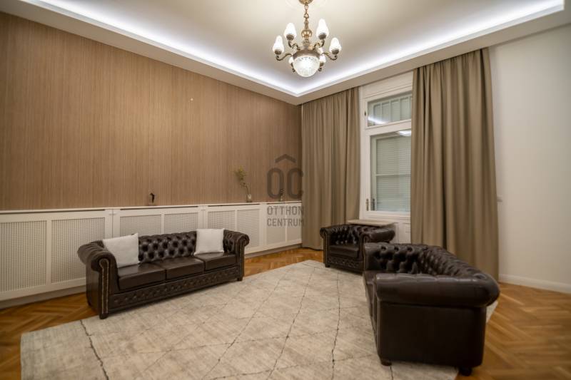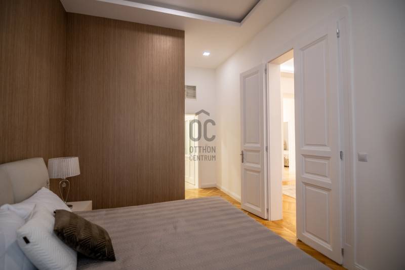 LUXUSLAKÁS BUDAPEST SZÍVÉBEN – PANORÁMÁS KILÁTÁSSAL A DUNÁRA ÉS A BUDAPEST EYE-RARÉSZLETEKBudapest V. kerületében, a Március 15. téren eladó egy 140 m²-es, 4. emeleti, délkeleti tájolású, 4 szobás és 3 fürdőszobás, teljeskörűen felújított luxuslakás, klasszikus polgári házban. A 3,7 méteres belmagasság és a megnyitott terek elegáns, világos összhatást adnak.A közös költség 18.340 Ft, ami ebben a kategóriában kiemelkedően kedvező.A lakásból közvetlen, panorámás kilátás nyílik a Dunára és a Budapest Eye-ra.LAKÁSA közel 60 m²-es nappali–konyha egy impozáns élettér, prémium anyaghasználattal és letisztult, modern vonalvezetéssel.A master háló saját, káddal és zuhanyzóval felszerelt fürdőszobát kapott, mellette egy 16 m²-es gardrób.Ezen felül két vendégszoba és két különálló fürdő szolgálja a kényelmet.A világos, délkeleti tájolású terekben a bézs és arany tónusok, valamint a klasszikus halszálka parketta harmonikus, időtlen hangulatot teremtenek.LOKÁCIÓA belváros egyik legjobb pontja: Deák Ferenc tér, Duna-part, Váci utca – minden pár perces sétával elérhető. |