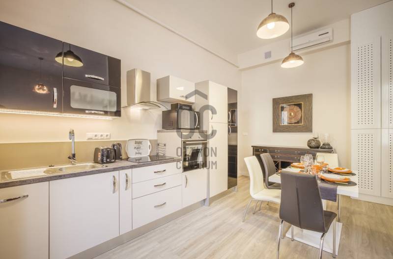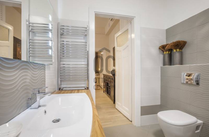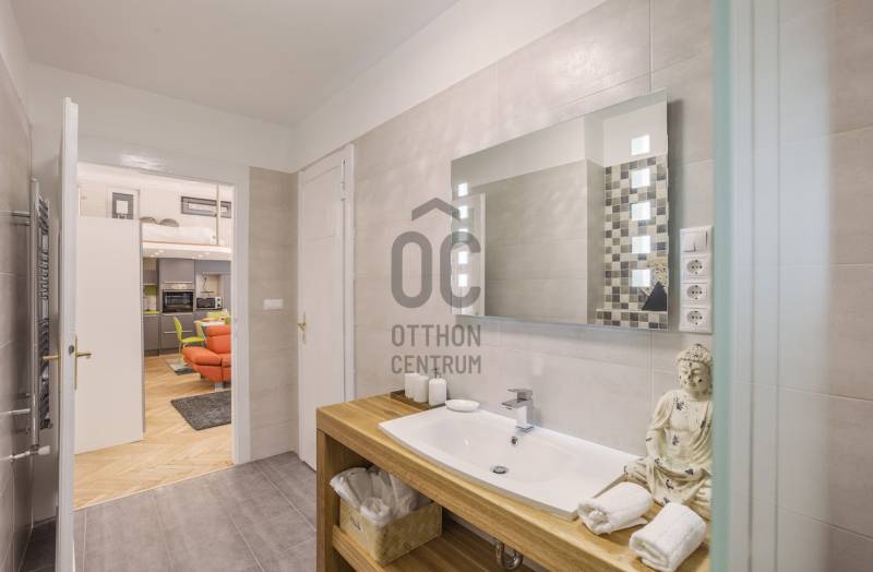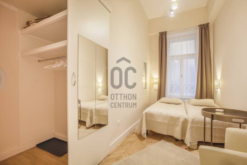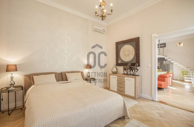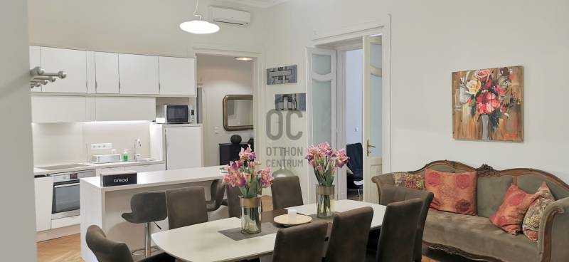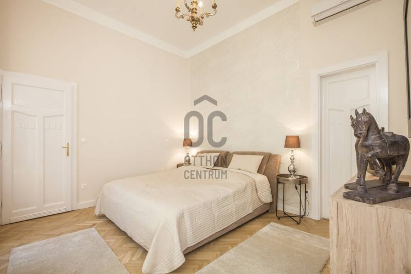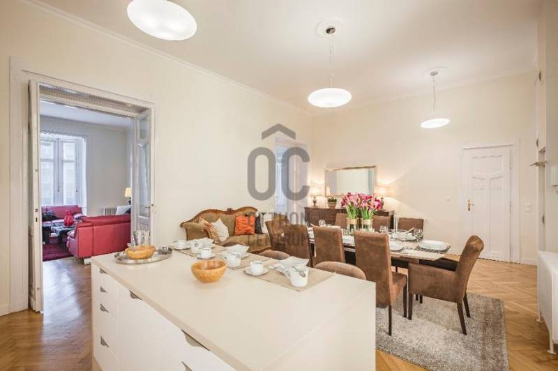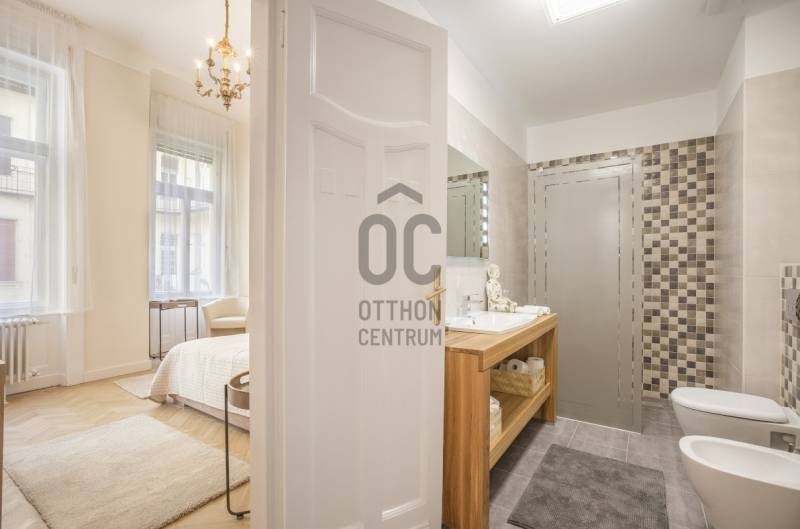 A Deák tér és az Astoria között, egy impozáns épületben található az ingatlan, mely három önálló lakásra lett kialakítva. Az összenyitása is megoldható, mert úgy lett kialakítva, ezért szét-vagy összeköltözőknek, irodának, rendelőnek, kiadásra tökéletes választás!Ingatlan:- 234 nm, 3,8 m belmagasságú, felújított, gáz-cirkó fűtésű, inverteres klímás 8 szobás, 3 fürdőszobás+WC-s, 2 önálló WC+kézmosós, teraszos lakás.- A szobák, részben utcai-részben pedig udvari nézetűek.- Az ingatlan egy akadálymentes, liftes társasház, II. emeletén helyezkedik el.Környezet:A legfelkapottabb része a fővárosnak, ahol sétatávolságra van a Zsinagóga, az Andrássy út, a Belváros, a Madách tér, az Astoria. |