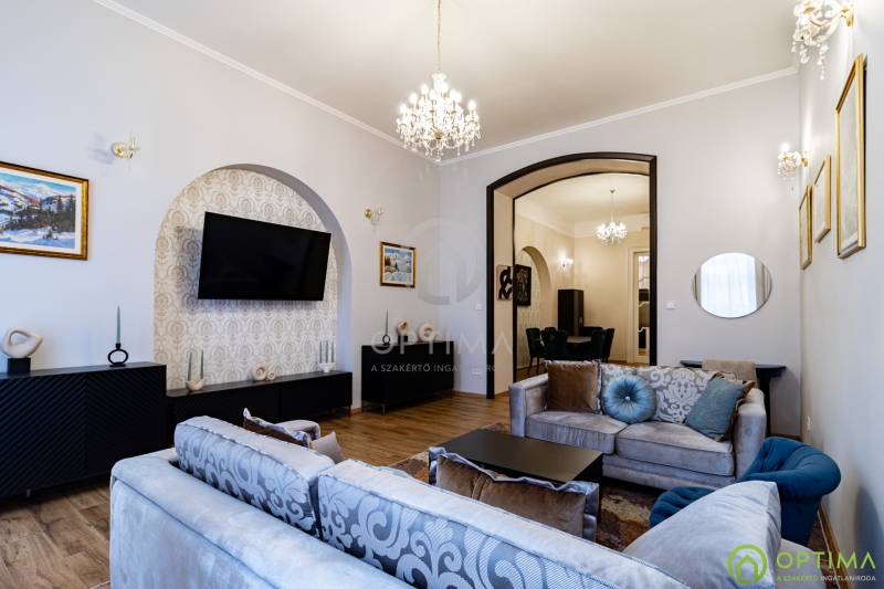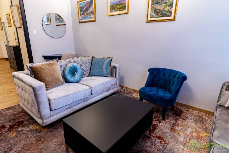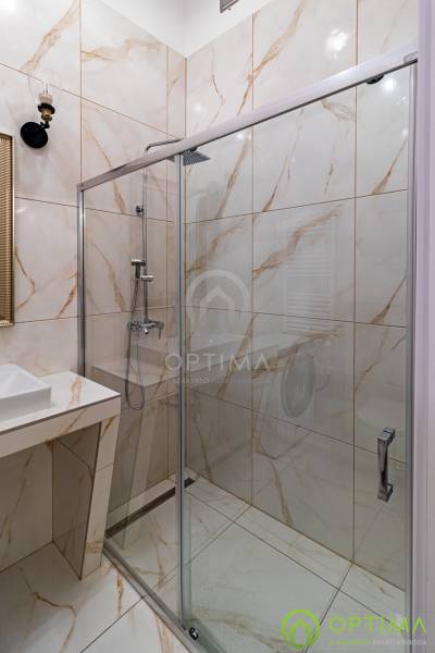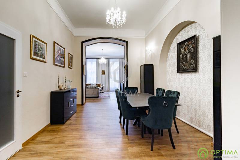 TELJESKÖRŰEN FELÚJÍTOTT, 2 SZOBÁS LAKÁS A PALOTANEGYEDBEN Budapest VIII. kerületének legkeresettebb városrészében, a Palotanegyedben, a Szentkirályi utcában kínálom megvételre ezt a 95 m2 alapterületű, I. emeleti, 2 szobás téglalakást. A ház külső és belső homlokzata is kiváló állapotban van. A lakás egy külön zárt folyosóról közelíthető meg, így csak 1 közvetlen szomszéd van. A lakás TELJES KÖRŰ felújításon esett át ebben az évben: - cserére kerültek a vezetékek (villany-, gáz- és vízvezetékek egyaránt), - beépítésre kerültek új hang- és hőszigetelő műanyag ablakok, - cserére kerületek a burkolatok a konyhában és a fürdőben egyaránt, - beépítésre került egy gépesített konyhabútor,- kialakításra került a cirkó fűtés, - beépítésre került légkondicionáló. A közös költség összege havonta 29.000 Ft, amely tartalmazza a szokásos tételeket, mint a LIFT használatot, a szemét elszállítását, a lépcsőház tisztántartását. A közüzemi fogyasztások mind egyedi mérőórák alapján kerülnek elszámolásra. A KÉPEKEN LÁTHATÓ BÚTOROK ÉS BERENDEZÉSI TÁRGYAK A VÉTELÁR RÉSZÉT KÉPEZIK. Az ingatlan BELVÁROSI elhelyezkedésének köszönhetően BEFEKTETÉSI céllal való vásárlása is kitűnő választás lehet. A lakás megtekintése miatt VÁROM HÍVÁSÁT akár hétvégén vagy az esti órákban egyaránt! |