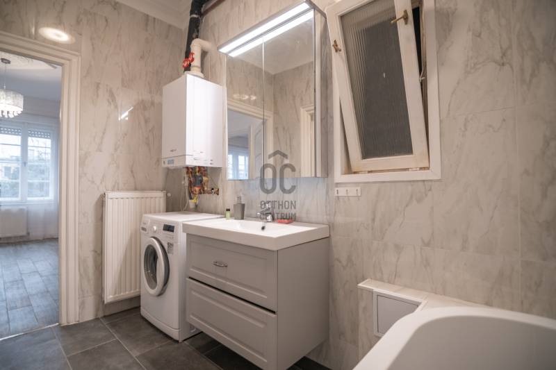 Eladásra kínálunk egy 2021-ben teljeskörűen felújított, 3 szobás, amerikai konyhás, magasföldszinti társasházi lakást a Budai Vár, Vérmező felőli oldalán.A felújítás során a lakás minden helyisége új hidegburkolatot, víz- és villanyvezetékhálózatot és új szanitereket kapott. A teljes fűtésrendszer is felújítására került, új radiátorokkal, a melegvízről és a fűtésről pedig kondenzációs kazán gondoskodik.A lakás két élhető méretű (18-20 nm), utcára néző, DNY-i fekvésű, nagyon világos, külön nyíló szobával rendelkezik.A nagyon tágas (34 nm) amerikai konyhás, étkezős, nappali teréből, a lakás összes helyisége megközelíthető.Az ingatlan a három, nagy terű helységének köszönhetően, akár irodának vagy orvosi rendelőnek is kitűnően alkalmas.A 4 szintes, 13 lakásos társaház rendezett anyagi háttérrel rendelkezik. A közelmúltban újult meg a lépcsőház, valamint lift is kiépítésre került.Közös költség: 27.500 Ft/hó.Gáz, víz, villany, fogyasztás szerint.A környék nyugodt, biztonságos, gyalogosan pár perc alatt elérhető a Várnegyed, valamint a Vérmező park, játszótérrel, kutyafuttaóval, éttermekkel és kávézókkal a közelben. A környék infrastruktúrája kiváló, a pár percre található Széll Kálmán téri közlekedési csomópont, ahol az M2 metró, valamint a 4-es, 6-os villamos és számos buszjárat fut össze és teszi könnyen elérhetővé a város bármely pontját. Gyalog 10 percen belül bankok, posta, drogéria és a Mammut bevásárlóközpont is megtalálható.Ha kérdése van az ingatlannal kapcsolatban, vagy szeretné személyesen is megtekinteni, hívjon bizalommal! |
