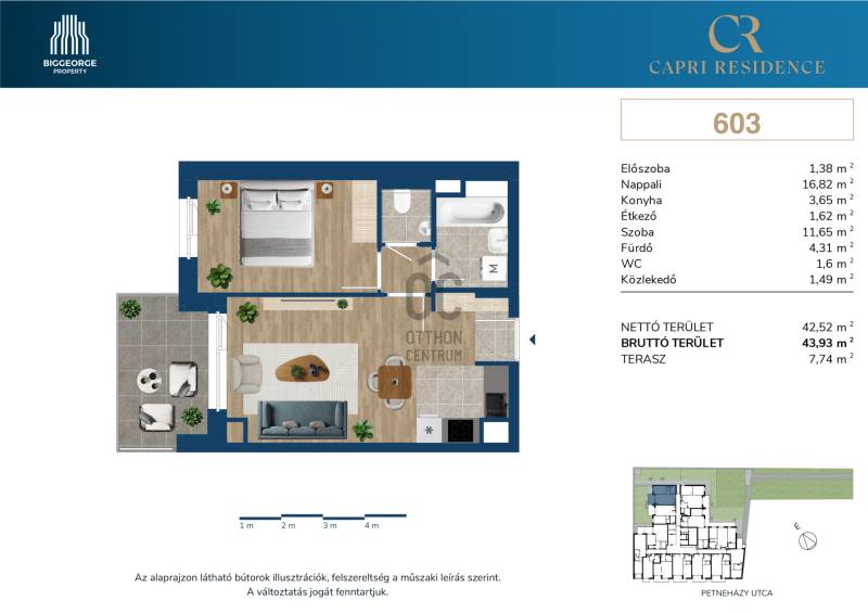 Projekt bemutatásaA Capri Residence a XIII. kerület szívében, a dinamikusan fejlődő Váci út közvetlen közelében valósul meg, amely Budapest egyik legkeresettebb lakáspiaci területe. Az elegáns, modern megjelenésű épületet, a homlokzatán végigfutó üvegkorlátos teraszok díszítik majd, a felsőbb szinteken pedig nagyteraszos lakások is elérhetők, amelyek egy része panorámás kilátást biztosít.Az épületben összesen 112 lakás kap helyet, amelyek elrendezése a stúdiótól a nappali plusz három hálószobásig terjednek. Az épületben emellett egy közösségi tér, 122 parkolóhely, 62 tároló, valamint opcionálisan elektromos autótöltővel szerelt teremgarázs beállók is megépítésre kerülnek.A műszaki felszereltség a legmagasabb szakmai trendeket követi: a Capri Residence lakóinak kényelmét mennyezeti hűtés-fűtés, háromrétegű üvegezéssel ellátott műanyag nyílászárók, smart-home előkészítés, valamint belsőépítész által összeállított belső anyagválaszték biztosítja majd. A földszinti lakásokhoz privát kertkapcsolat tartozik, emellett a társasház közös díszkerttel is rendelkezik.