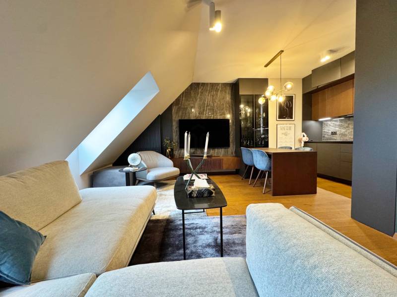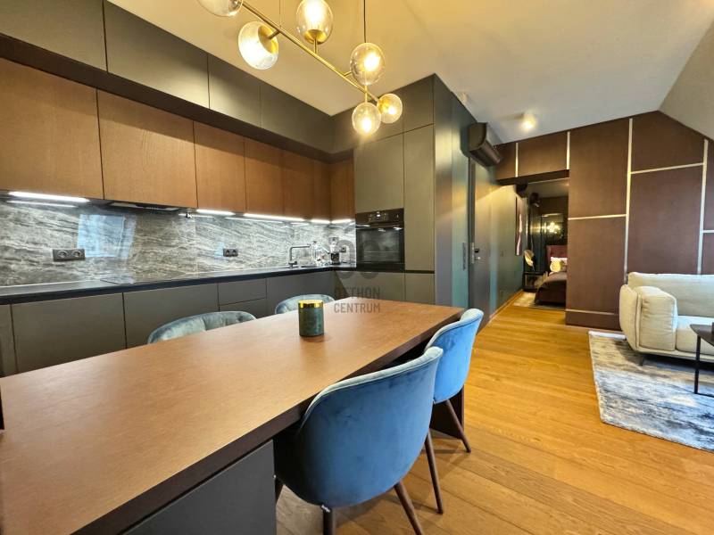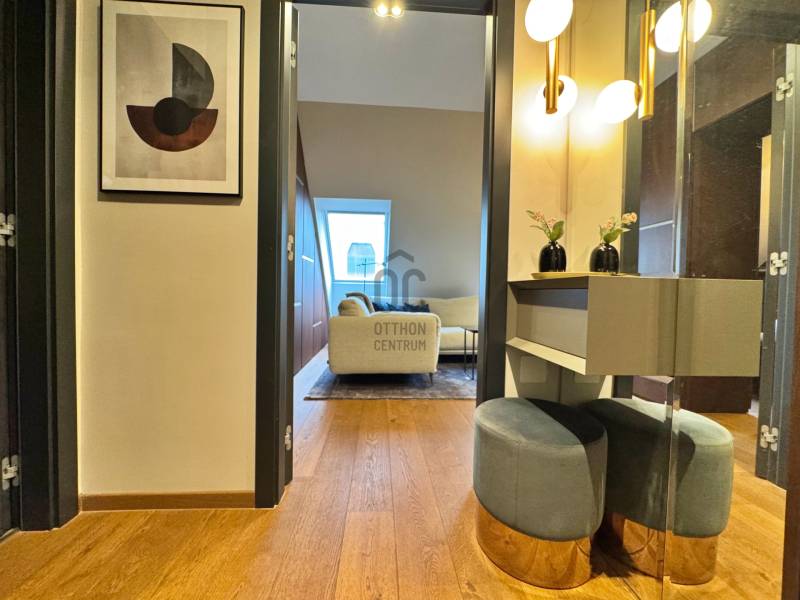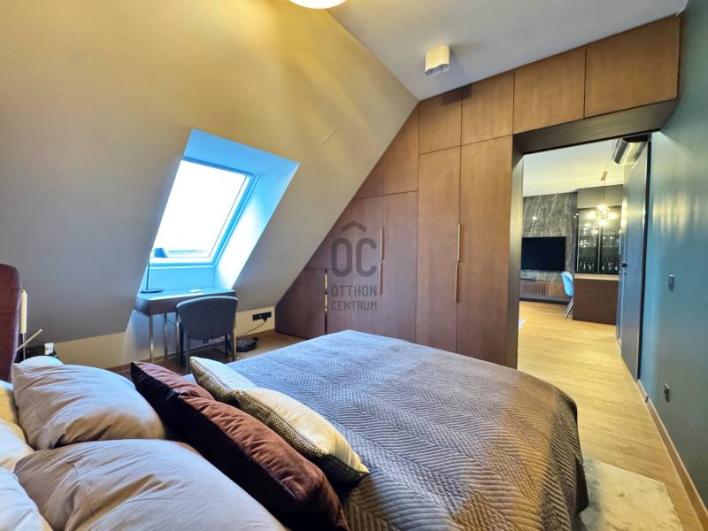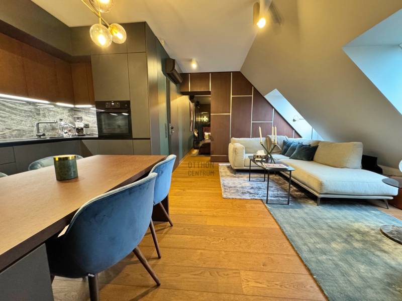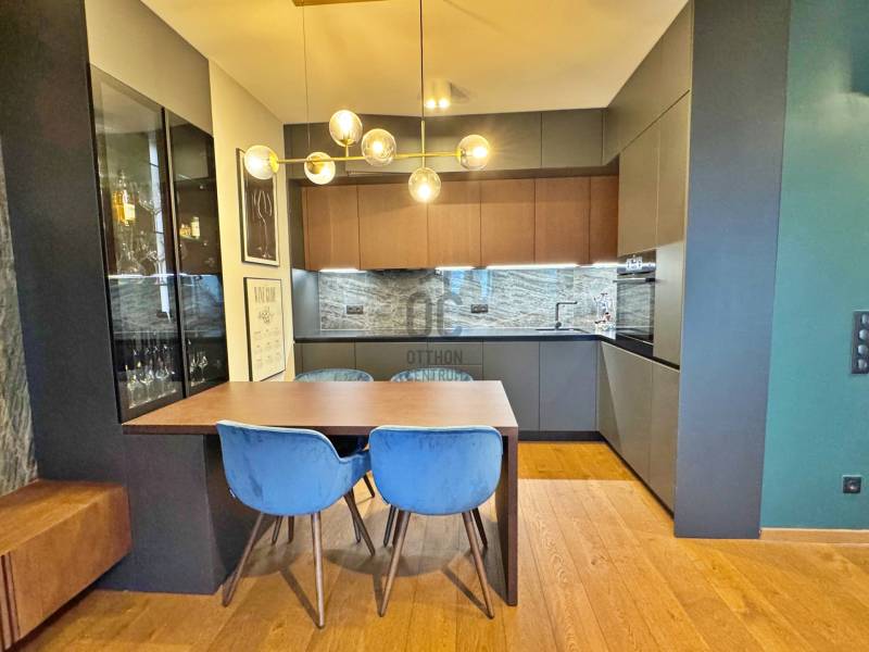 Eladó Budapest IX. kerületében, a Rehabilitációs területen, a Lenhossék utcában egy nettó 37 m²-es, tetőtéri, másfél szobás, teljes bútorzattal felszerelt lakás!A 2020-ban épült, modern társasház a régi épület felújított homlokzati elemeit megtartva készült, a Kerekerdő park közvetlen közelében.A lakás nettó 37 m² (összes alapterület 51 m²), kiváló elrendezéssel és világos terekkel. A tulajdonos magas minőségű burkolatokat, bútorokat és egyedi tervezésű dizájnelemeket építtetett be, így az ingatlan valóban prémium érzetet nyújt.A lakás teljes bútorzattal kerül átadásra, így azonnal költözhető, további beruházást nem igényel.Vásárolható a lakáshoz egy tároló 3,7 m2 ára: 3M.-Ft és egy gépkocsibeálló a mélygarázsban ára 9M.-Ft. Főbb jellemzők:Tetőtéri, másfél szobás kialakításTeljes bútorzattal eladóMagas minőségi burkolatok és bútorokIgényes, egyedi dizájn2020-ban épült társasházKlíma és egyedi mérésű házközponti fűtésKiváló állapot, azonnal költözhetőCsendes, biztonságos környékKiváló közlekedés: busz- és villamosmegállók néhány perc alatt elérhetőkÜzletek, éttermek, szolgáltatások a közelbenA környék folyamatos fejlődése miatt a lakás kiemelkedő befektetés, ugyanakkor első otthonnak is tökéletes választás.Amennyiben kérdése lenne, vagy szeretné megtekinteni személyesen is, kérem hívjon bizalommal, várom.Teljeskörű pénzügyi és jogi háttér-szolgáltatással várom kedves ügyfeleimet. |