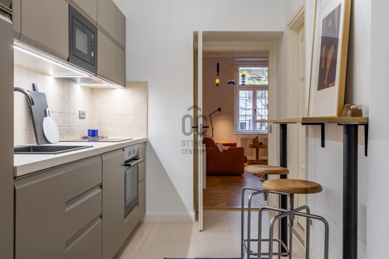 Ahol a keleti fény, a naphegyi csend és egy picike zöldre néző erkély teszi különlegessé a mindennapokat. Üdv itthon!Rövid összefoglalóBudapest I. kerületében, a Naphegy egyik csendes, kis forgalmú utcájában található ez a 42 m²-es, keleti tájolású, magasföldszinti lakás, amely tágas szobájával, külön konyhájával és egy ritka, saját használatú, belső kertre néző kiülős résszel különösen szerethető, nyugodt életteret kínál.Elhelyezkedés – Naphegy, Budapest I. kerületA Csap utca a Naphegy egyik meghitt, régi hangulatú szeglete, ahol a város tempója természetesen lassul le. A környék sajátos báját a dombos utcák, a kis léptékű házak és a közeli zöldfelületek adják — a Tabán pár percre van, a Budavári Palotanegyed és a Várkert Bazár pedig kényelmes sétatávolságra. A mindennapi élethez szükséges szolgáltatások, kisboltok és kávézók közel vannak, a közlekedés egyszerű, mégis megmarad az a bensőséges, tabáni karakter, amely miatt ez a környék külön kategória Budán.Az épületA Csap utca 1. egy barátságos, kisebb léptékű társasház, amely a Naphegy eredeti városszövetének hangulatát őrzi. A homlokzat letisztult, a közös terek rendezettek, a ház állapota ápolt és stabil. A magasföldszinti elhelyezkedésű lakás külön előnye, hogy ez a szint utolsó lakása, így a bejárat előtt nincs átjárás, nem járkál senki az ablak és az ajtó előtt — ez a társasházi környezetben ritka és értékes intimitást ad.A lakás előtt húzódó függőfolyosó ezen szakasza kizárólagos használatú kiülős rész, ami egy falakkal körbevett belső kertre néz, amely a sűrű lombkoronáival, a nagy fáival és a kert intimebb tereivel olyan, mintha egy rejtett kis udvarban ülnél — egy igazi, zöld „lélegző pont\" a városi környezetben.Ez a rész a lakás egyik legerősebb hangulati eleme:reggeli kávéhoz, olvasáshoz, egy kis kikapcsolódáshoz tökéletes, és minden évszakban külön hangulattal bír.A lakás belső világaA 42 m²-es lakás térszervezése logikus és letisztult, a keleti tájolás miatt pedig reggeltől természetes fény járja át.• Tágas szobaA fő helyiség egyszerre nappali és háló, elegánsan egyszerű, természetes színekkel, skandináv jellegű berendezhetőséggel és parkettával. A két nagy ablak levegős, világos teret ad, amely a nap első felében különösen kellemes.• Külön konyhaA felújított konyha modern, visszafogott tónusokkal, minőségi beépített gépekkel és egy elegáns pulttal, amely reggeli vagy gyors étkezések helye lehet. A helyiség jól szervezhető és praktikus.• FürdőszobaA fürdőszoba mérete kategórián felüli: világos, természetes árnyalatok, különleges mosdópult, tágas zuhany, gondosan tervezett tárolás. A részletek finomsága jól illeszkedik a lakás egész hangulatához.Összegzés és kapcsolatfelvételA Csap utcai lakás egy olyan tabáni otthon, ahol a letisztult belső terek, a keleti fény, a történeti környezet és a meghitt, saját kiülős rész együtt alkotnak egy ritka, harmonikus egységet.Ez nem csupán egy lakás — ez egy kis zöld oázis a város szívében, ahol a mindennapok ritmusa természetesen válik lassabbá és élhetőbbé.Szívesen megmutatom személyesen. Írj vagy hívj, és egyeztetünk időpontot!-------------------------------------------------------------------**Díjmentes, bankfüggetlen hiteltanácsadással támogatjuk vevő ügyfeleinket a számukra legelőnyösebb finanszírozási döntések meghozatalában.Opcionálisan igénybe vehető kiegészítő szolgáltatásainkkal – mint ügyvédi közreműködés, energetikai tanúsítvány vagy villamos biztonsági felülvizsgálat – teljes körű szakmai támogatást nyújtunk az adásvétel folyamatának minden egyes lépésénél.**-------------------------------------------------------------------A hirdetésben szereplő információk tájékoztató jellegűek. A tévedés és az árváltoztatás jogát fenntartjuk. Az esetleges elírásokért és technikai hibákért felelősséget nem vállalunk. |