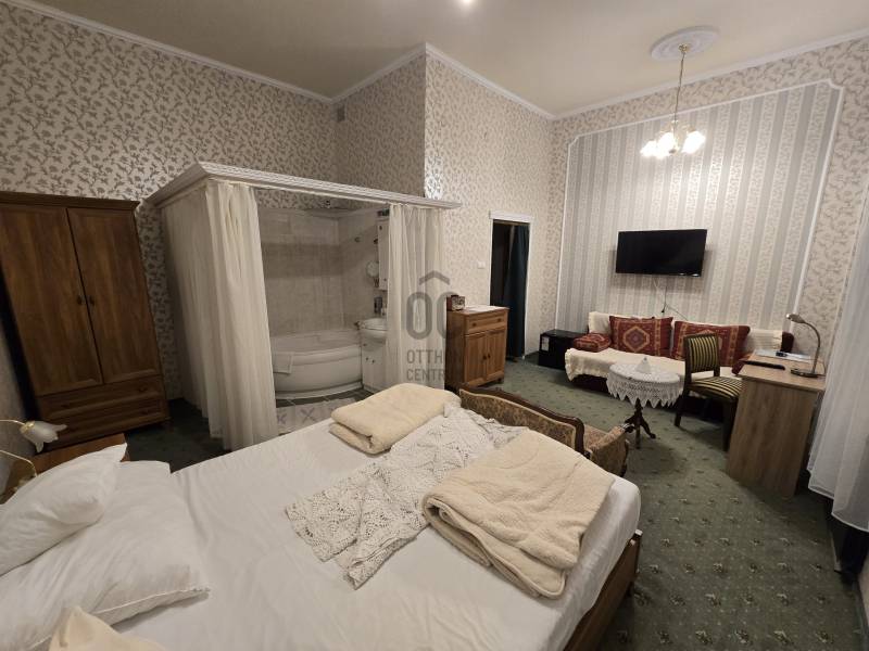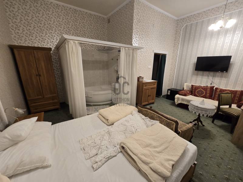 Főúri kényelem Misefán – lépjen be a klasszicizmus világába a misefai Fábiánics-kastélyban!A mindössze alig 260 lelket számláló Misefa a zalai dombok ölelésében fekszik, a nyugalom és az idill szigete. Kiváló elhelyezkedésének köszönhetően ugyanakkor könnyedén elérhetők olyan nagyobb városok, mint Zalaegerszeg, Keszthely, vagy éppen a hévízi és kehidakustányi gyógyfürdők. A Zala vármegyei község a 76. számú főút mentén, Makovecz Imre apai szülőfaluja, Nagykapornak szomszédságában fekszik.A 13. század óta lakott Misefa legfőbb nevezetessége a XIX. században épült Fábiánics-kastély, amely Fábiánics Ignác, királyi főtanácsos és főjegyzőnek köszönheti létrejöttét. A kastély folyamatosan használatban, fejlesztve és szépítve volt, míg végül Zala vármegye főispánja, és az Első Magyar Takarékpénztár egyik alapítója, Bosnyák Géza keze nyomán elnyerte a ma is látható klasszicista pompáját. A második világháború alatt ugyanakkor sanyarú sorsra jutott a pompázatos épület: majorsági épületeit lebontották. Régi fényének visszaállítása jelenlegi tulajdonosainak köszönhető, akik 1998-ban négycsillagos kastélyszállót alakítottak ki benne.Az 1650 négyzetméretes épület magával ragadó látványa már a Foglár-csatorna hídján átkelve elénk tárul, a 6048 négyzetméteres területre egy impozáns kapun léphetünk be. A kastélyban 14 vendégszoba és 5 lakosztály található, tetőtere igény esetén további 6 lakosztály kialakítását is lehetővé teszi, amelyhez a lépcsőház és a födém előkészítése már megtörtént. Az épület konferenciateremmel, történelmi hangulatot árasztó, kandallóval felszerelt káprázatos könyvtárteremmel, télikerttel, és egy pezsgőfürdővel, valamint finn- és infraszaunával felszerelt wellness részleg is található, így a történelmi hangulat és a modern kor kényelme kéz a kézben járnak.A 400 négyzetméteres csehsüveg-boltozatú hajdani borospince ma látványkonyhával működő étteremként funkcionál, ahol a régi magyar és nemzetközi ételkülönlegességek és a vadspecialitások mellé az ország legjobb borait kóstolhatjuk. Az étterem nagy méretéből kifolyólag csoportok fogadására is alkalmas.A kastély fűtésrendszerét jelentős anyagi és energiaráfordítással 2019-ben korszerűsítették, amelynek során napkollektorokkal is felszerelték az épületet. Az ingatlan felújított, műszakilag teljesen korszerűsített, esetlegesen a vizesblokkok igényelnek némi frissítést.A kastélyt egy több mint 200 éves őspark övezi, amely lélegzetelállító flórájával önmagában is idilli helyet kínál a pihenésre és a feltöltődésre, de számos egyéb kényelmi elemmel is rendelkezik, úgy, mint nyári grillvendéglő, szabadtéri, fűthető úszómedence és pezsgőfürdő.A kastély szomszédságában egy 10 éve telepített, 4 hektáros arborétum, valamint 2 darab 2400-2400 négyzetméretes, összközműves, parkosított, 30%-os beépíthetőségű belterületi telek, illetve egy 210 négyzetméteres családi ház is található, amelyek opcionálisan mind megvásárolhatók a kastéllyal együtt, ezáltal tovább bővítve a kastélyszállóban eleve rendelkezésre álló impozáns lehetőségeket.Az ingatlan tulajdoni viszonyai rendezettek, azonnal birtokba vehető. Tökéletes választás befektetési céllal a szállodaipar, a turizmus és vendéglátás szférájában keresőknek, de könnyedén átalakítható egészségügyi, rekreációs vagy akár szociális funkcióval bíró központnak, emellett a tágas tereket és a letisztult, klasszicista stílust kedvelők számára családi otthonnak is kiváló választás.Ne habozzon, hiszen az ingatlan iránti érdeklődés folyamatosan növekszik! Kérdés esetén bátran keressen minket, és tapasztalt csapatunk örömmel áll rendelkezésére, hogy segítsen Önnek a legjobb döntés meghozatalában. |
